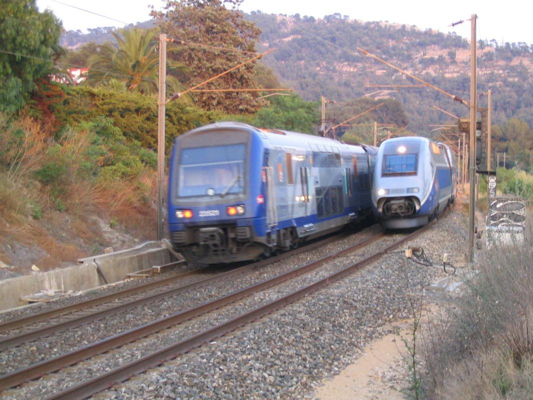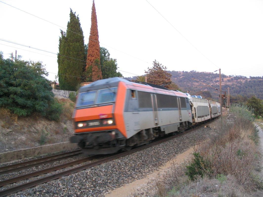 Bonsoir, petite récolte de photos sur le jour déclinant à Saint Cyr sur Mer. J'étais parti pour avoir le TAC Nice > Nantes, mais mon APN en a décidé autrement, il a décidé de se mettre en grève à ce moment là Mais il y a eu du monde: Une Z 23500 Hyères-Marseille: Un TGV venant de Nice: Un Corail IC venant aussi de Nice et montant certainement à Lyon: Croisement entre une Z 23500 pour Les Arcs et un TGV venant de Nice: Enfin, une sybic en tête d'un train auto (désolé, c'est flou, je n'ai pas un APN de compétition) Tout ça en 1h et je n'ai pas mis les trains venant de Marseille, ils étaient à contre jour!
