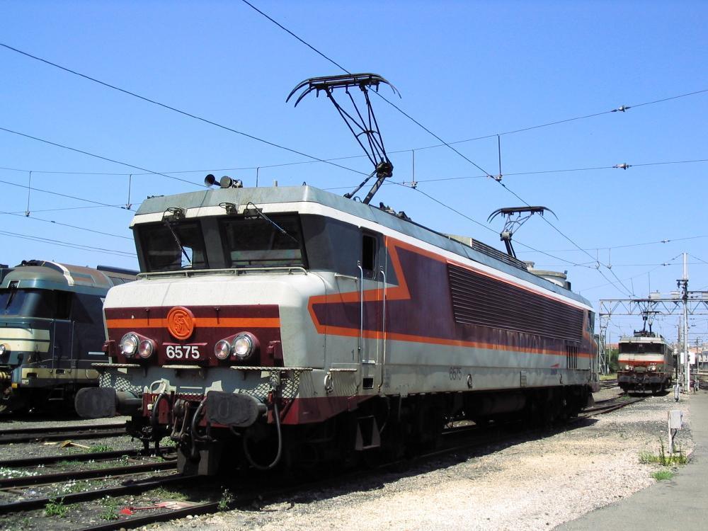 Bonsoir, hier l'APCC 6570 avait organisé un barbecue sur le triage de Fontcouverte, l'occasion de se retrouver et discuter, puis spotter. Le matin, au dépôt, en plus de la 70 maintenant habituée à ces lieux, il y avait la 6575, ex 21001 qui se reposait avant une prochaine course: Puis passage d'un train de machines à Fontcouverte: Un Corail tiré par une BB 9300: Et un Fret remorqué par une Sybic moins d'une minute après, au block: Dédicace à Coco, un moteur de BB 66000 entrposé au dépôt: