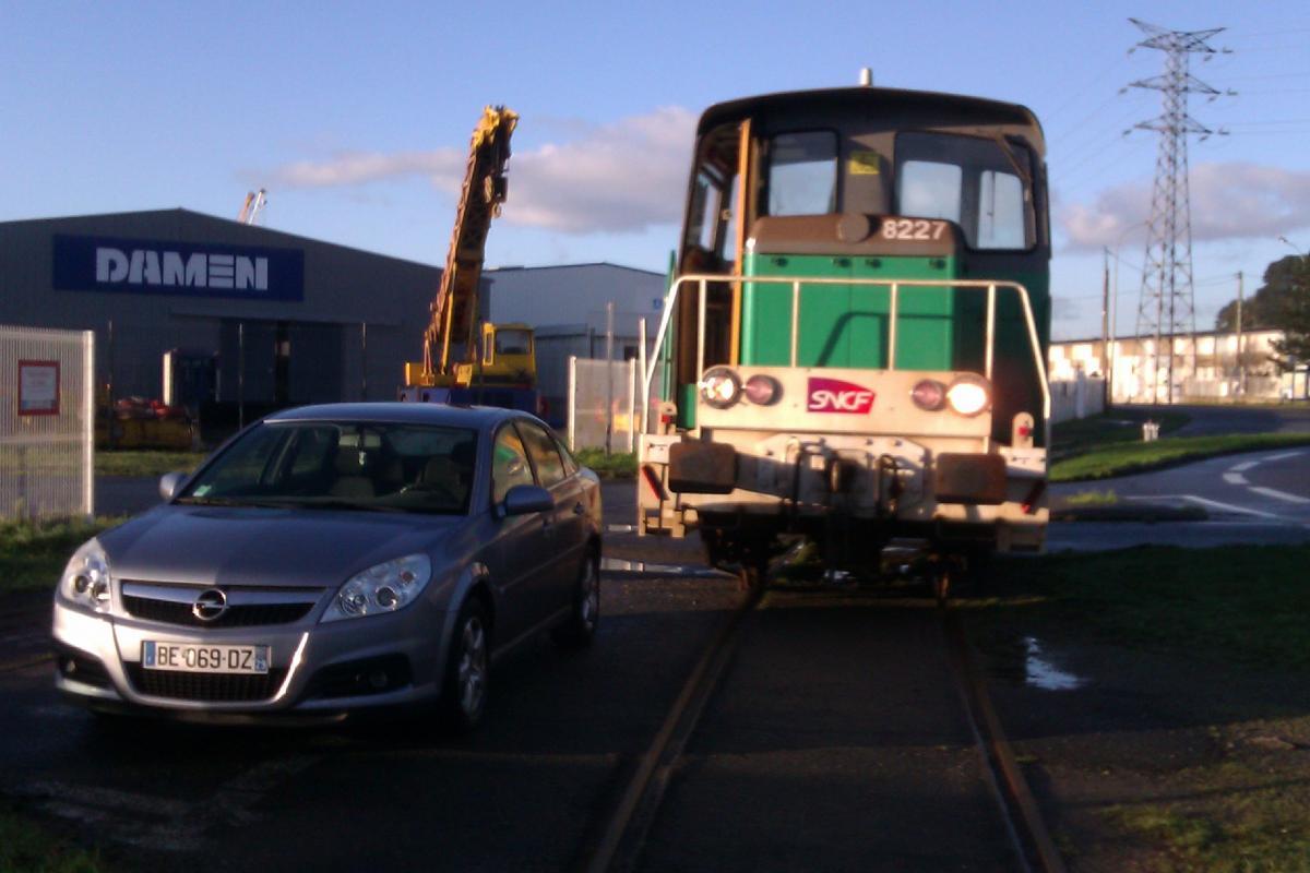 Pour le coup y'en a un qui ne va pas retrouver sa bagnole..... sauf en se rendant à la fourrière.. Brest bassins desserte de l'ITE Air Liquide janvier 2014.