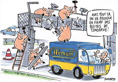 Copains comme cochons ? Rien en se perd dit on dans le cochon.... les cochons collectent la matière première pour leur boitage, les cochons finiront en pâté....ça c'est de la gestion !! et aprés on dit que les bretons sont des ploucs attardés.....! Au final les portiques ne seront aps perdus pour tout le monde...... nonmais