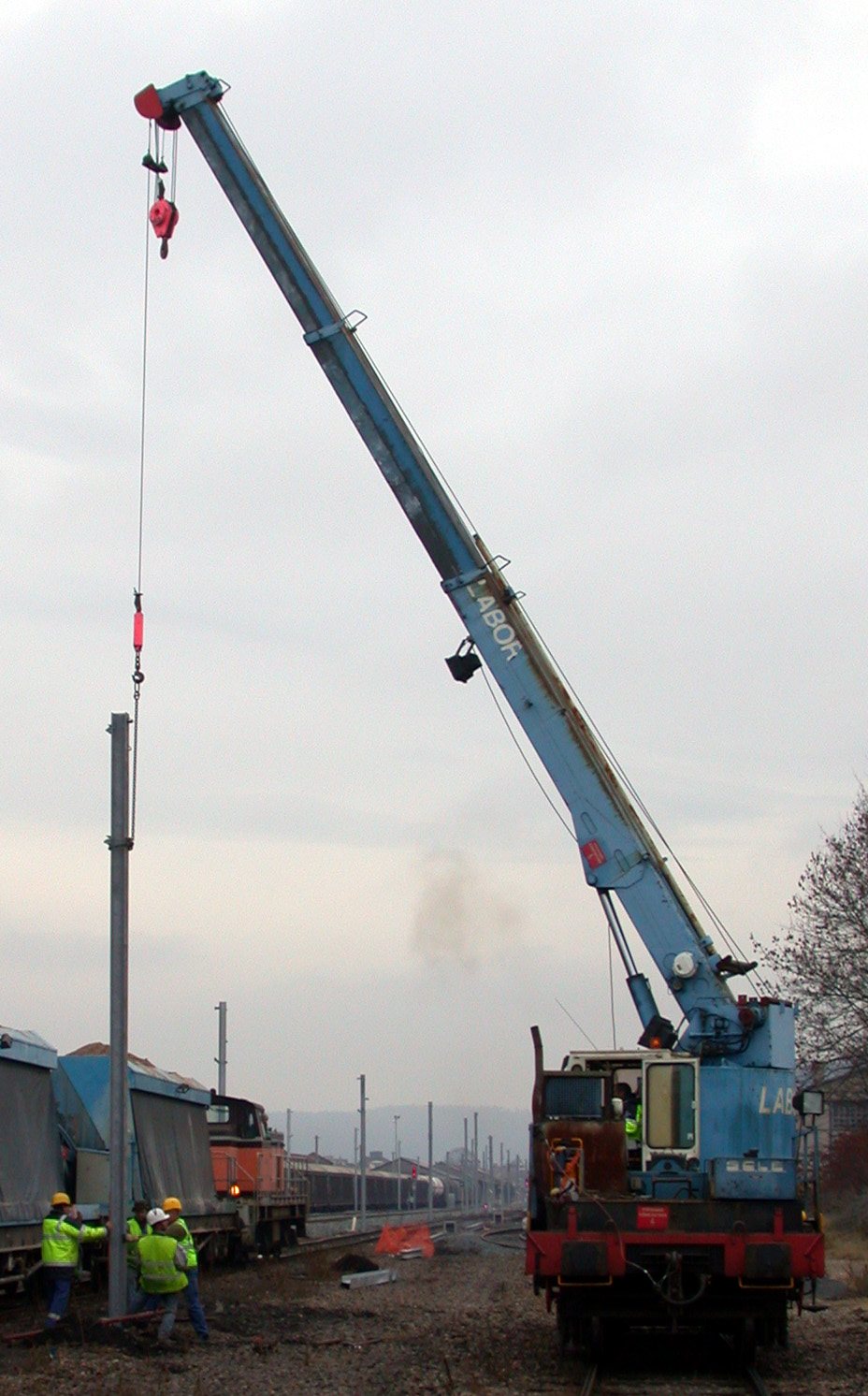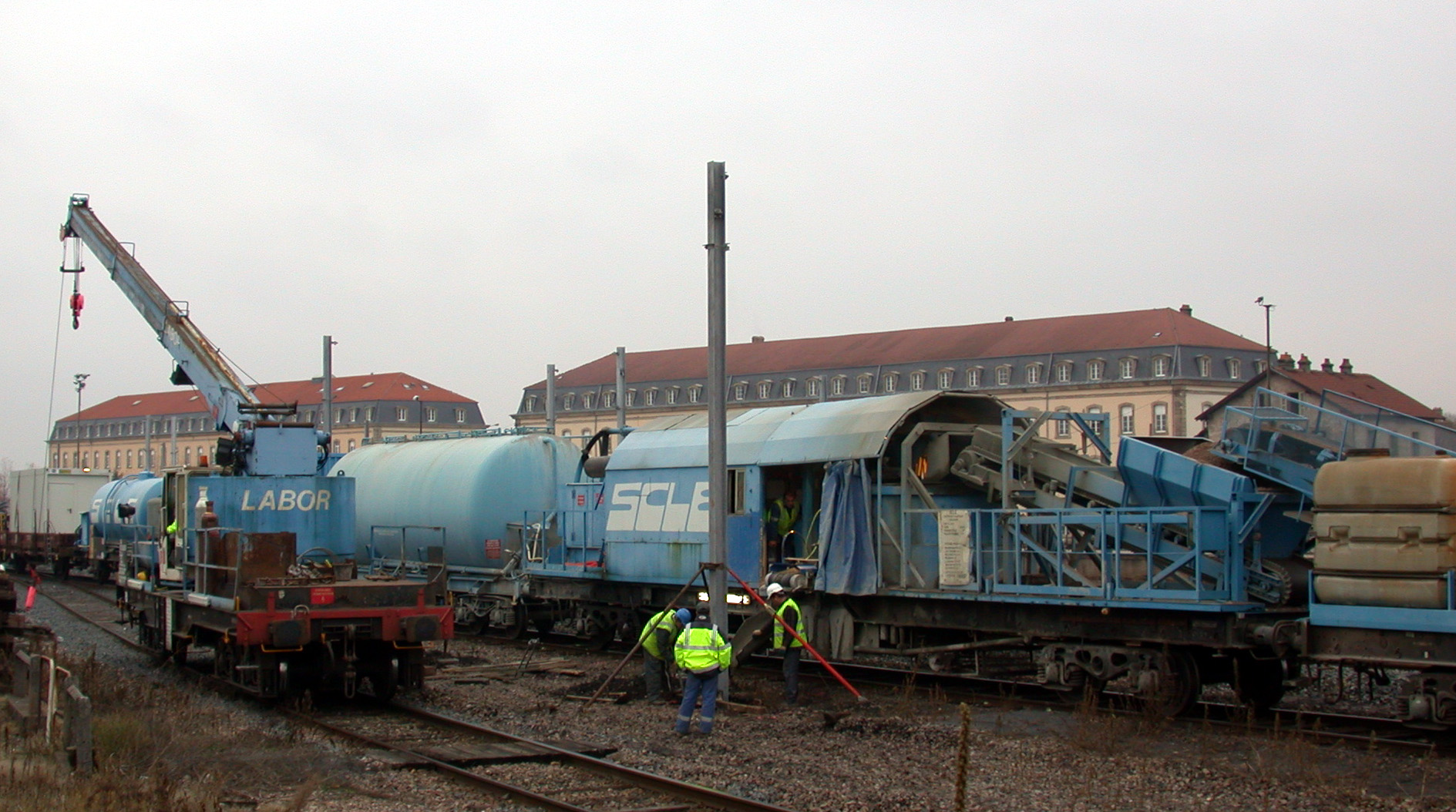 Ci joint photo de phase "béton-matage" A savoir que les baches que l'on voit sur le coté des trémis servent à éviter les problème de gel éventuel, Une photo montre en gare d'Epinal (je crois) d'un coté le bétonnage du support de l'autre le matage avec la grue ferroviaire. Désolé je me suis loupé dans la manip et j'ai mis deux foix la même.