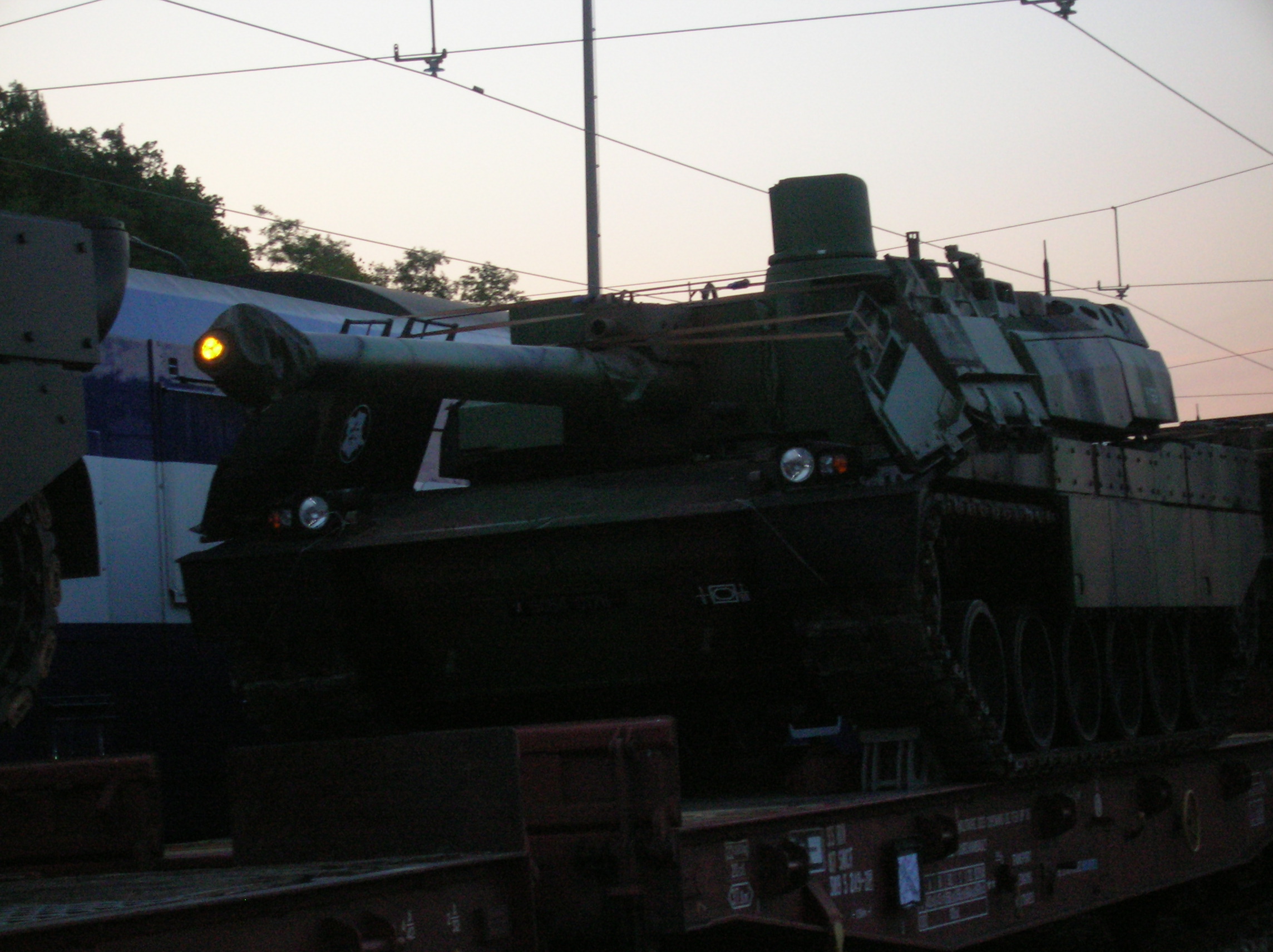 Ok c'est ça!! bon ba je vois que je suis aussi nul pour deviner que pour poster les photos!!! Pour la petite histoire, c'est un train qui ramenait les chars Leclerc dans leur régiment peu après le défilé du 14 Juillet 2007 mais l'ATE n'était pas bon. Le train est donc resté calé 3 ou 4 jours à Etampes. Sinon vous pensez que j'ai battu un reccord ou pas? mdrmdr