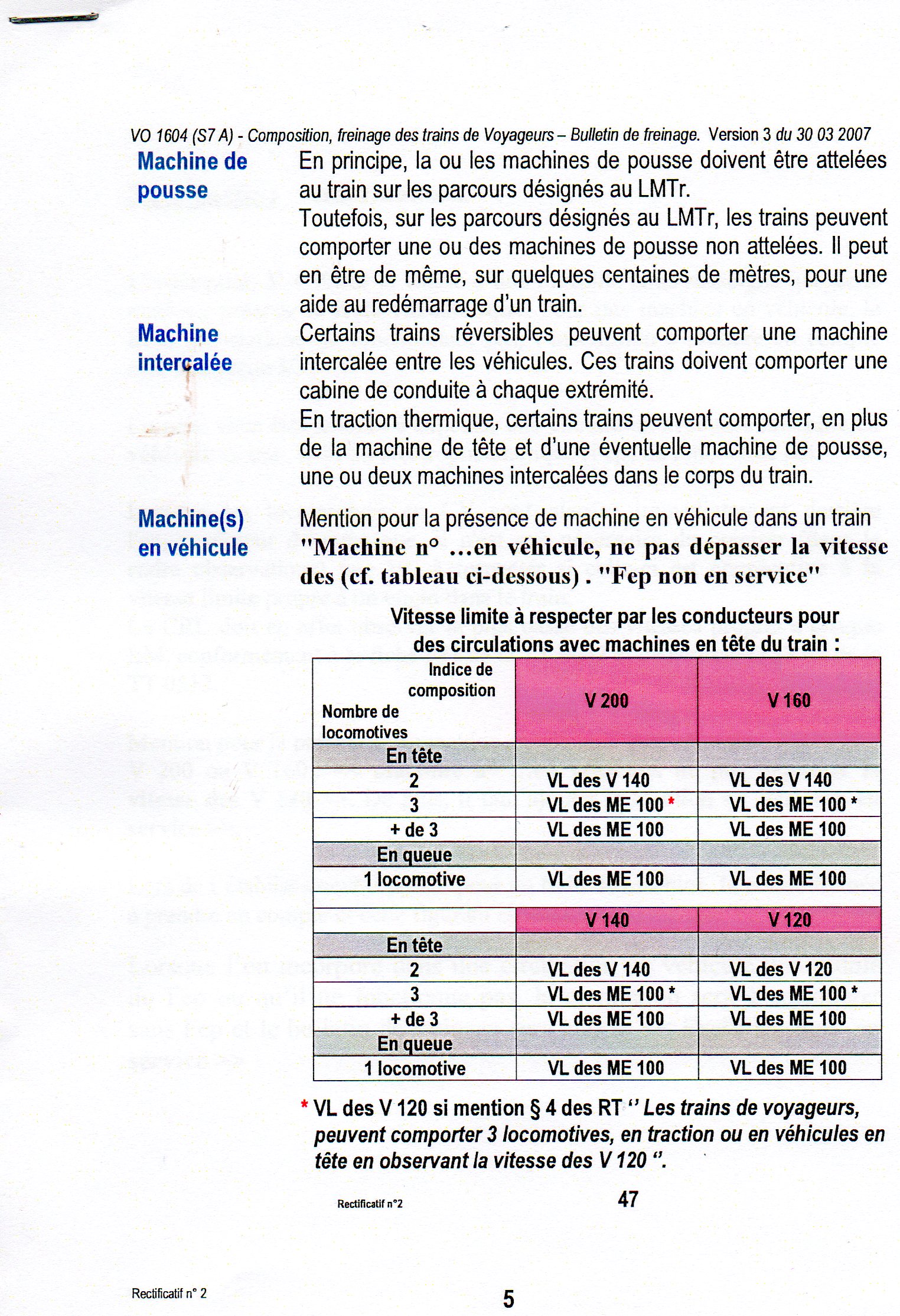 Voici un petit tableau récapitulatif pour les trains de voyageurs: Pour les ME c'est max 3 machines en tête et 1 ou 2 dans le corps du train Pour les MA c'est max 6 machines