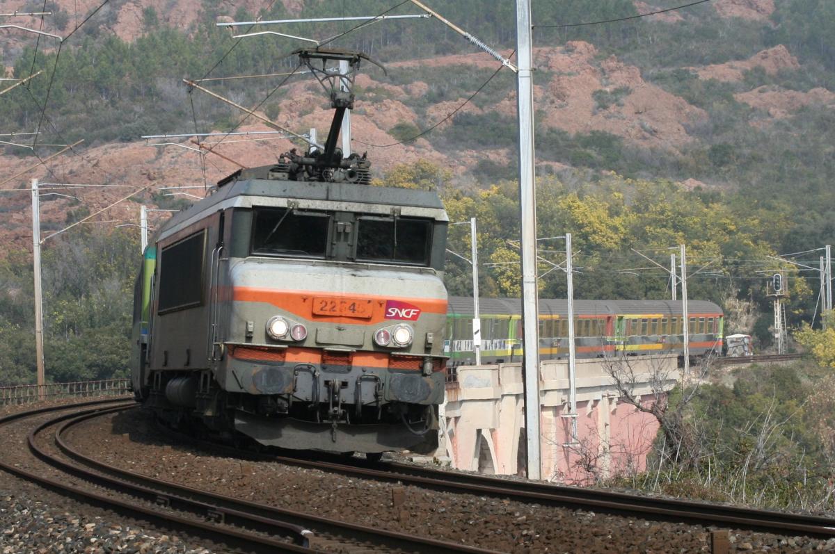 19. Voici deux photos prises à Anthéor Cap Roux ce week end avec TGV 8618 ! La belle BB22345 sur le 4758 Une RRR qui est ici poussée par la BB25669 et qui assure le TER 881212