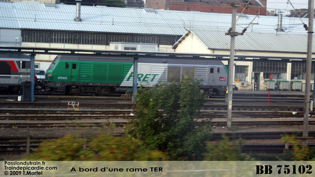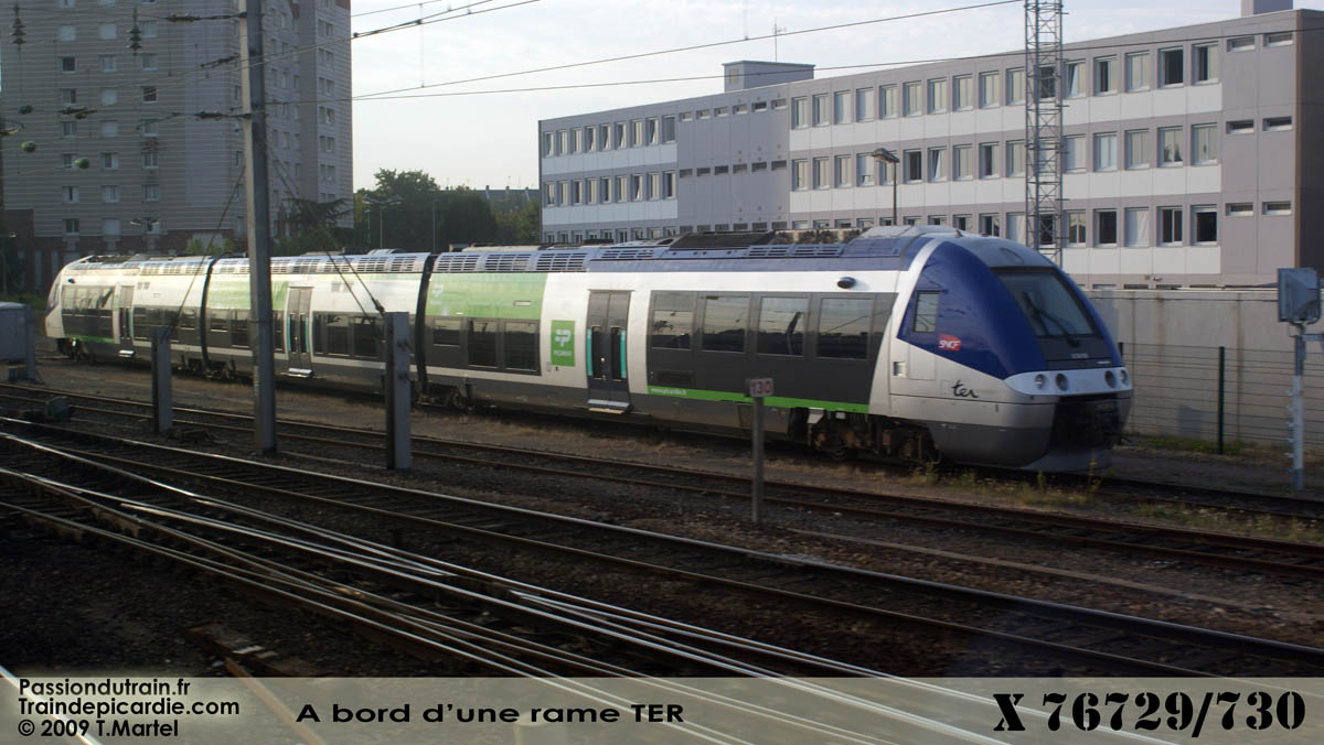Petit voyage à Lens Au programme de cette série - Photos prise à bord d'un TER (caisse voyageurs) - Photos en gare de Lens - Photos au Technicentre de Lens Précision : les photos au technicentre ont était faite avec l'aimable autorisation de la Direction Régionale SNCF de Lille Note : Attention si vous prenez des photos dans les gares du Nord-Pas de Calais, visiblement, ils n'aiment pas les photographes. J'ai pu en faire le matin à Lens parce qu'ils était sympa, l'après-midi la relève n'était pas aussi sympa, j'ai du faire en mode "volé". Photos à bord du TER Rouen/Amiens/Lille Flandre Prises d'Amiens à Lamotte Brebière Photos en gare de Lens à suivre...