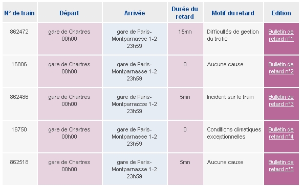 Pas mieux pour le TER Centre. A Montparnasse, les bulletins de retard papier ne sont plus distribués. On nous demande de les imprimer à partir du site TER Centre. Sauf que ... Entre les retards de 0 minute et les retards sans cause, le bulletin ne fait pas très sérieux... De plus, mon 16804 qui est arrivé avec 20 minutes de retard ne figure pas dans la liste...