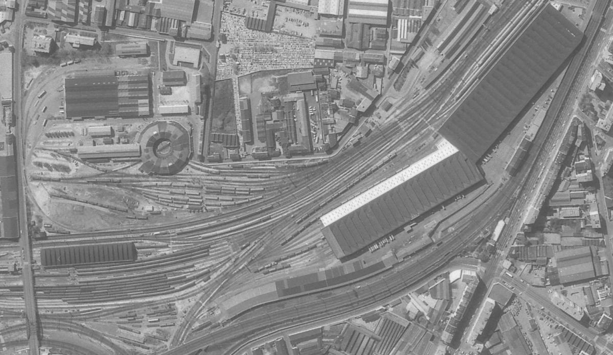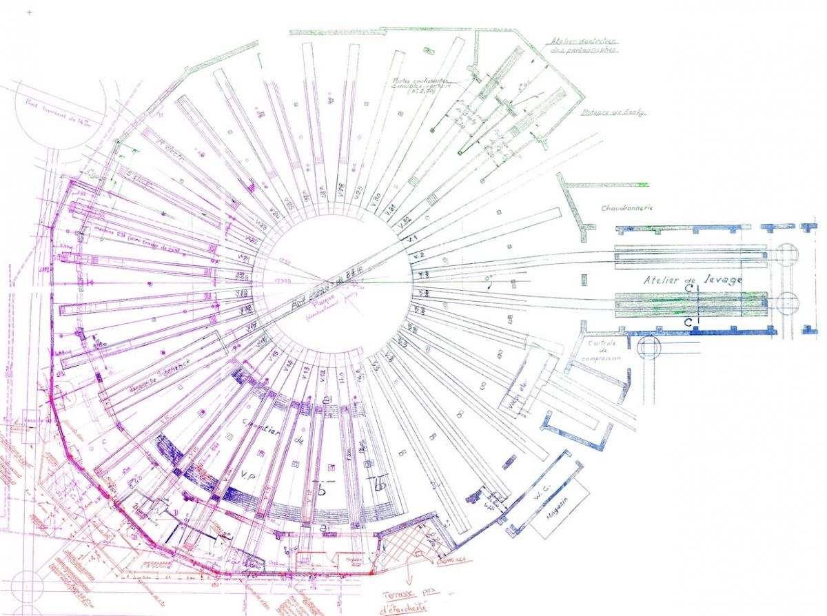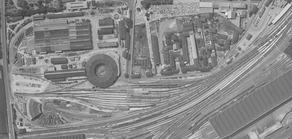 Grace à l'IGN, voici l'état du dépôt à différentes dates (ressentes ... ?) 1964 1972 1984 C'est ce dernier état (en 1984) qui m'intéresse. Il reste que l'organisation et l'apparence des infrastructures a peu bougé à travers le temps. On repère bien la destruction du château d'eau de la rue Pierre Sémard et surtout celle de la rotonde Est. La rotonde Sud ainsi que la coupole centrale avait disparue depuis déjà bien longtemps ....