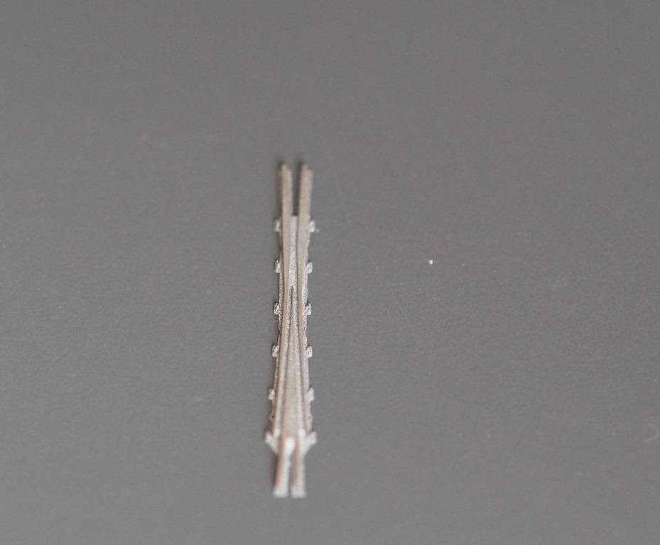 Salut à tous, Un peu de nouvelles sur l'avancement des mes pérégrinations ferroviaires au 1/160. Je continue avec le développement de la voie en utilisant la technique de l'impression 3D. J'en ai profité pour faire quelques test sur un coupon pour avoir un ballast suffisamment fin. Je me suis finalement rabattu sur du ballast prévu pour l'échelle Z (1/220) et je trouve que la granulo se rapproche vraiment mieux d'une transposition au 1/160. Profilés UIC60 enfilés avant peinture : Pose d'un petit coupon ballasté et peint (avec différentes teintes de ballast : En parallèle, je me réattaque à la caténaire mais là je n'en suis qu'à dessiner les plans des supports (mon plan de piquetage est au moins fait !) @+ pour la suite Rémy