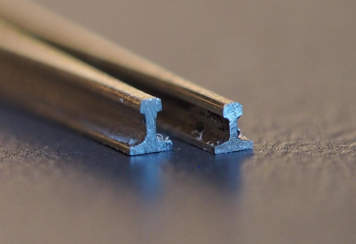Salut, Récupération hier de ma commande de rail U50/U36. Une petite photo de comparaison avec le rail UIC60 (à gauche). En hauteur, les profilés sont conformes à l'échelle stricte. Par contre, les épaisseurs de l'âme et du patin ont été légèrement forcies pour des questions de faisabilité et de solidité. PS : le rail n'est pas poilu mais la poussière avec la macro, ça ne pardonne pas @+ Rémy