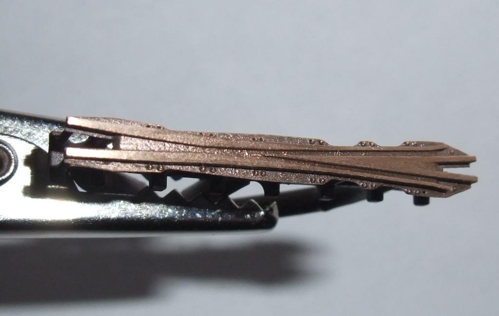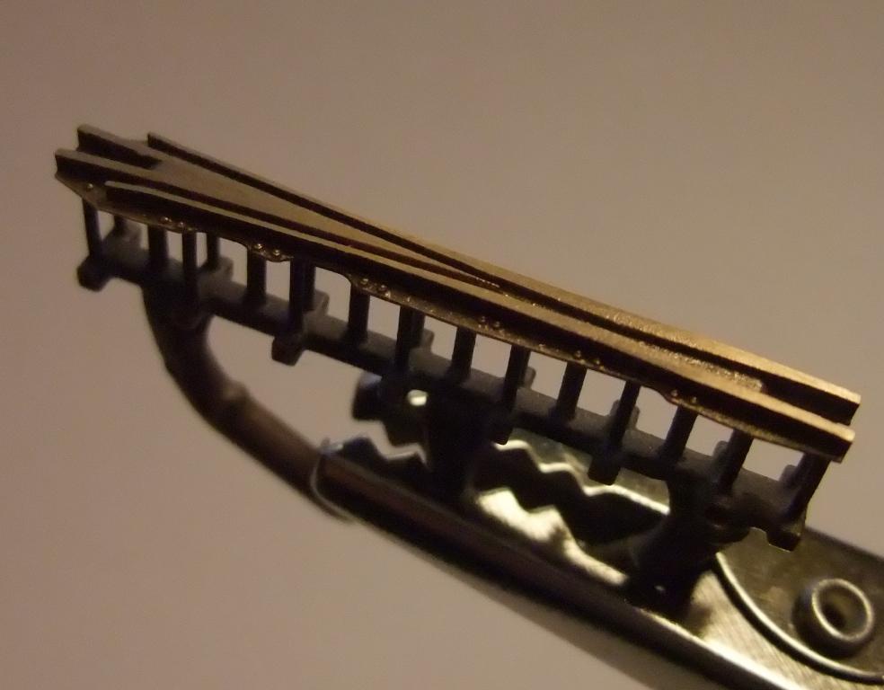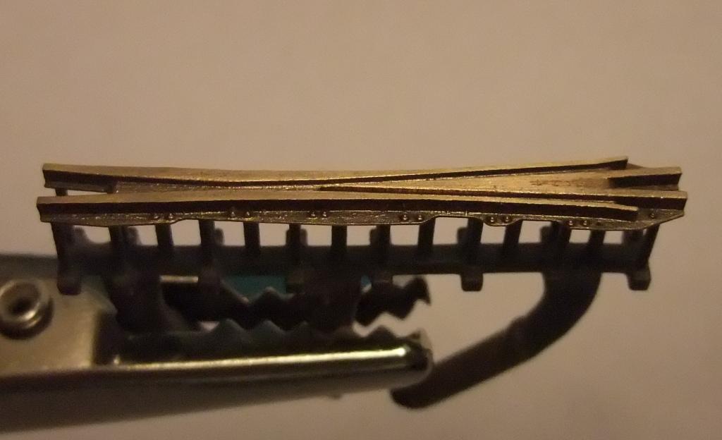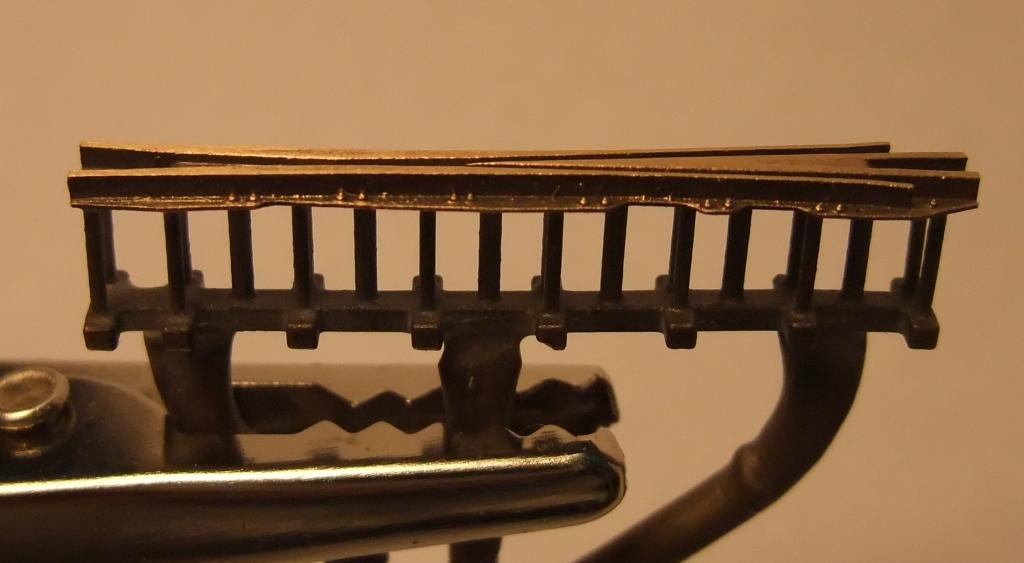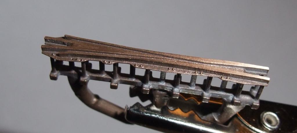 Salut à tous, L'aventure se poursuit avec ENFIN mon premeir coeur moulé en Proto-160. Il s'agit donc, comme le terme "Proto-160" le suggère, d'un élément réduit à l'échelle 1/160 d'après l'original sans (ou avec très peu de) concession. Pour ce coup d'essai qui visait à vérifier ce que donnerait des pièces de fonderie couplé à du prototypage rapide haute résolution, c'est un coeur droit U36 tangente 0,11 qui a été retenu. En effet, les formes sont un peu plus compliquées que sur un coeur UIC60 et les têtes de tirefond (très fines puisque faisant 0,2 mm) ont été reproduite pour vérifier la finesse de reproduction. Je dois dire que je ne suis pas déçu. Les prototypes de roue Proto-160 passent bien entendu sans problème dans les ornières ("c'est étudié pour" comme dirait l'autre). La bête fait une trentaine de mm de long. A bientôt pour la suite des aventures Rémy
