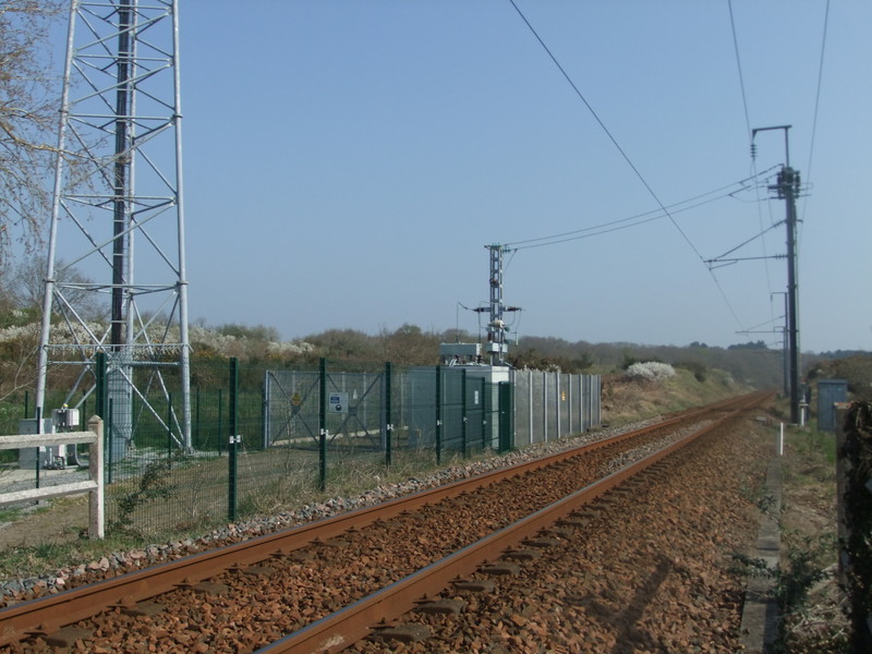 2. C'est bien aux environs de Pornichet . . . C'est le poste de transformation haute-tension de Rochalot (commune de La Baule-Escoublac) situé au PK 504 + 700 entre l'ancienne gare de Saint-André-des-Eaux (PK 500 + 635) et Pornichet (PK 506 + 070). La ligne sépare les communes de La Baule-Escoublac (à gauche) et de Pornichet (à droite). Dans le fond la direction de Saint-Nazaire et Nantes.