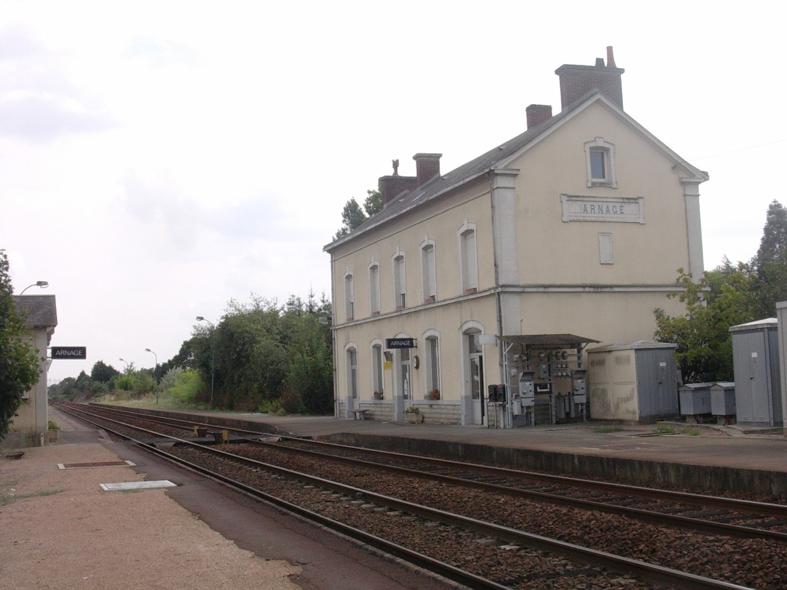 Bravo c'est bien Arnage (km 325 + 800) Cette gare, la plus proche du célèbre circuit des 24 heures du Mans, a été mise en exploitation par le PO en juillet 1858 en même temps que la ligne Le Mans - Château-du-Loir - Tours (19 juillet 1858)