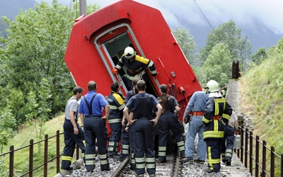 Le train GE 904 a déraillé dans la vallée de Conches entre les gares de Lax (km 14 + 750) et de Fiesch (km 17 + 270) à 1050 m d'altitude environ (rampes/pentes : 25 mm/m) Graphique de circulation du MGB (Matterhorn-Gotthard Bahn)