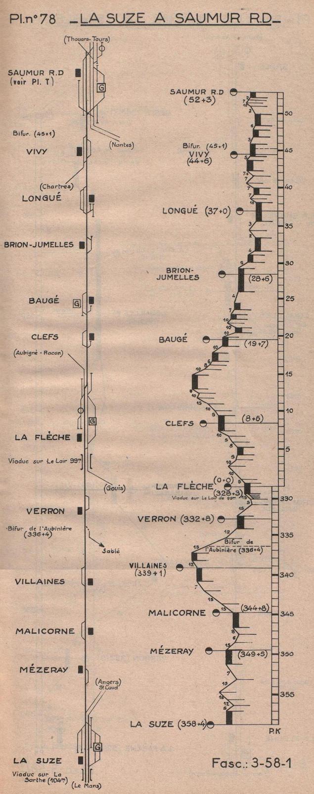 18. Ligne 78 - La Flèche - Malicorne-sur-Sarthe - La Suze-sur-Sarthe (Le Mans) Ligne 78 - La Flèche - Baugé - Vivy - Saumur Ligne 79 - La Flèche - Crosmières-le-Bailleul - Sablé-sur-Sarthe Ligne 80 - La Flèche - Luché-Pringé - Le Lude - Aubigné-Racan Ligne 80 - La Flèche - Bazouges - Durtal - Angers (Saint-Barthélemy) Ligne La Flèche - Cérans-Foulletourte - Le Mans (tramways de la Sarthe) Gare de bifurcation de La Flèche (328 + 300) Mise en exploitation : le 19 juin 1871 Fermeture au service voyageurs (par fer) : le 6 avril 1970