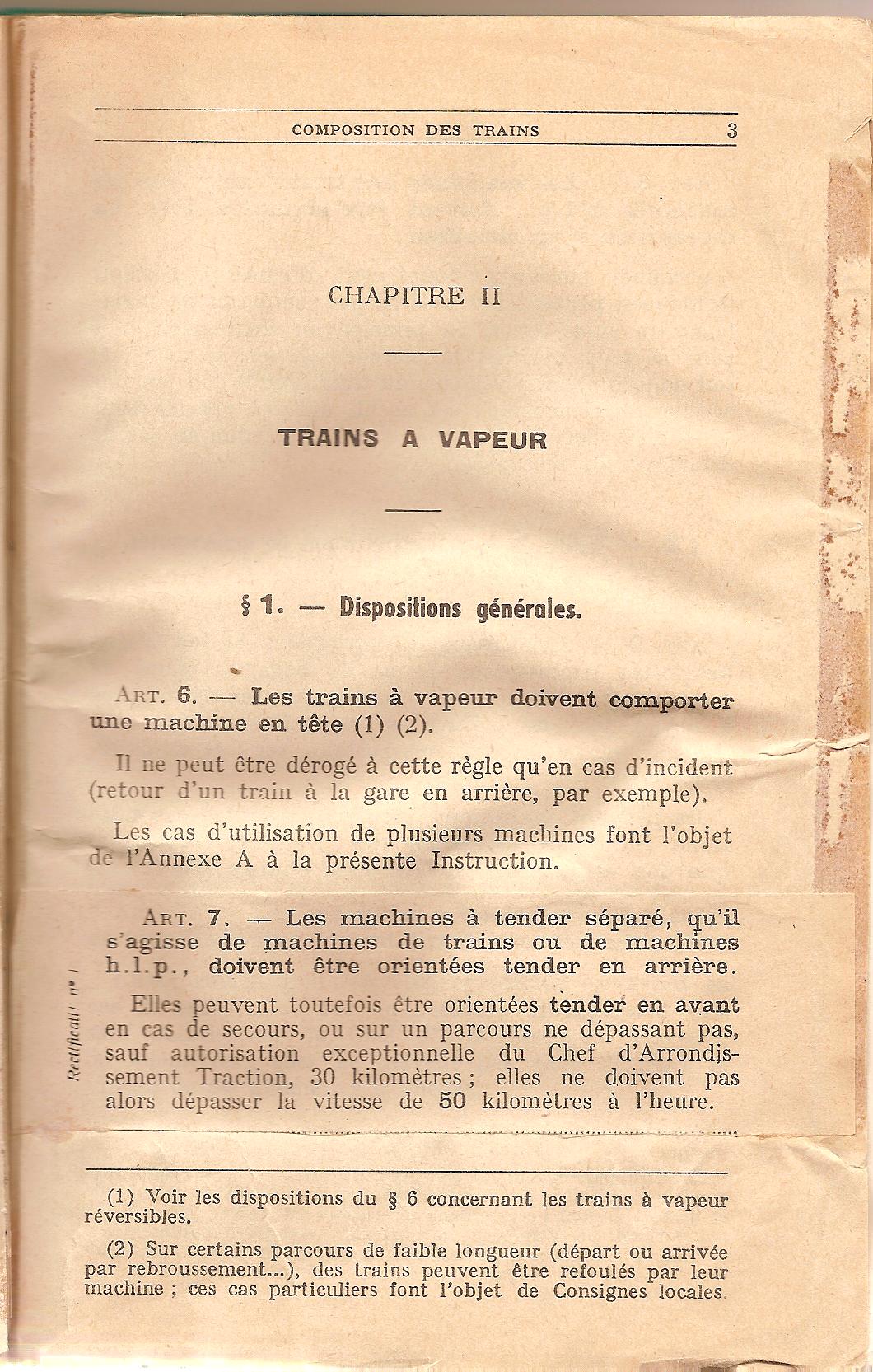 Bonsoir Jackv Les trains à vapeur et l'ICT de 1947 Ce règlement ainsi que ses annexes A et C a été supprimé en 1988 à l'occasion de la mise en place du Règlement S7A (l'actuel IN 1604)