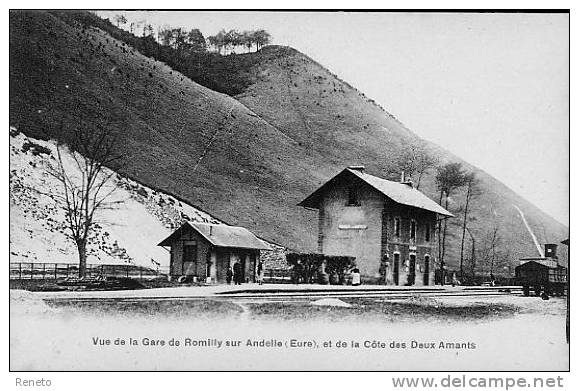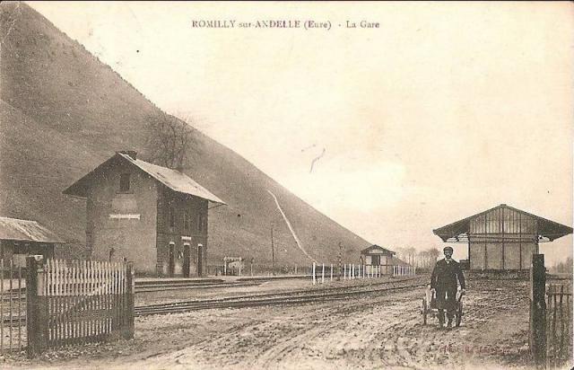 L'ancienne halte de Pitres (km 47.700) Elle était située à 5.300 km de Pont-de-l'Arche et à 47.700 km de Gisors-Embranchement Un train se dirige vers Charleval et Gisors-Embranchement On remarquera la présence d'un ancien disque de la compagnie de l'Etat L'ancienne gare de Romilly-sur-Andelle (km 46.200) Elle était située à 6.800 km de Pont-de-l'Arche et à 46.200 km de Gisors-Embranchement Dans le fond la direction de Pont-de-l'Arche