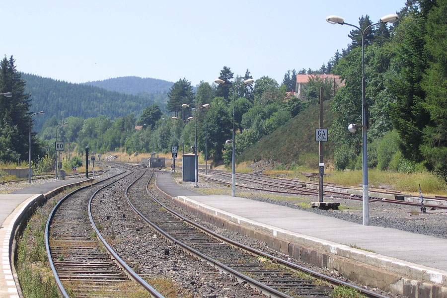 5. Département de la Lozère (Région Languedoc-Roussillon). C'est tout simplement la sortie de la gare de La Bastide-Saint-Laurent-les-Bains (PK 606 + 600) côté Nîmes. Altitude : 1 023,220 mètres. Reconnaissable à son PK 607 présent sur la photo de Mikado43 à proximité de la pancarte Z. A gauche le Cévenol qui commence sa descente vers l'ancienne gare de Prévenchères-Gorges-du-Chassezac et Villefort. Pancarte R située à droite : direction Mende. Je passe la main. Source photo