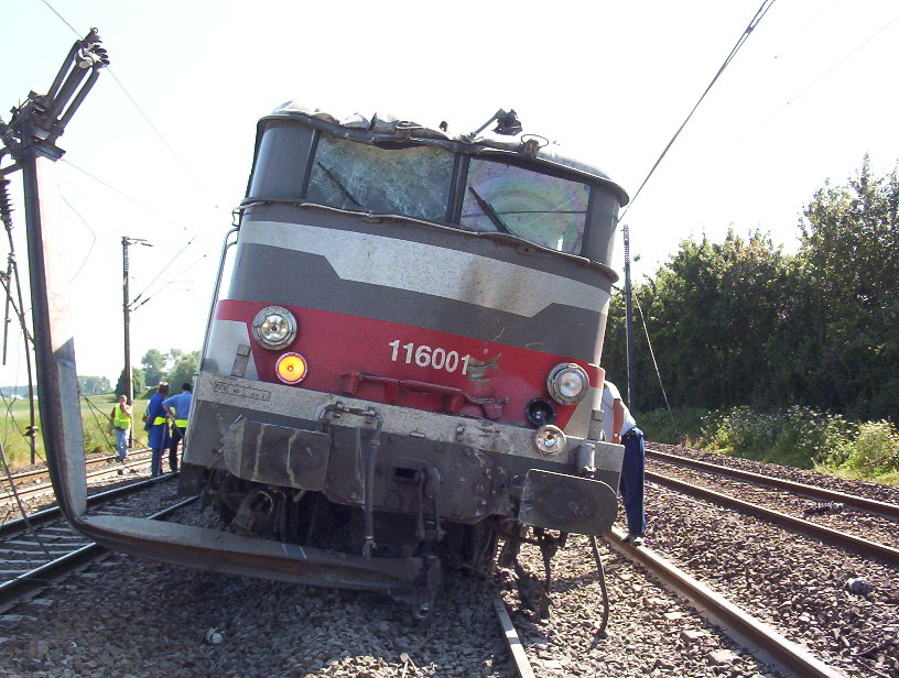 Il me semble qu'il avait eu confusion de ZEP à l'époque. Le train a déraillé et s'est incliné légèrement, il a été retenu par les poteaux caténaires au lieu de se coucher à 90°