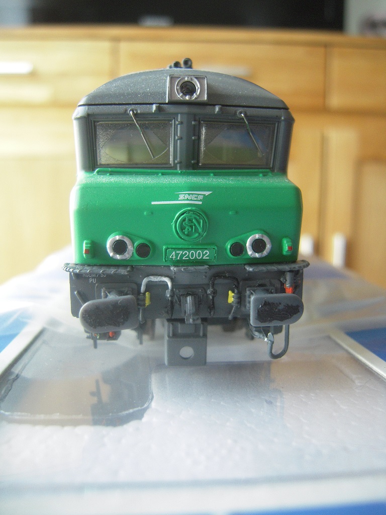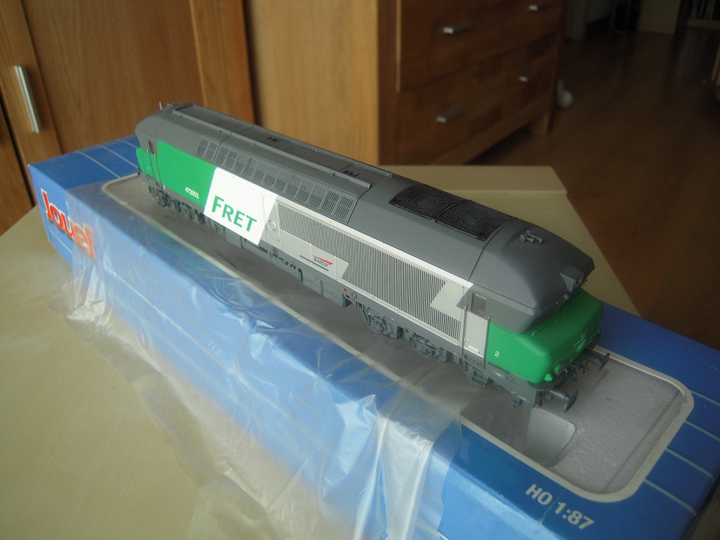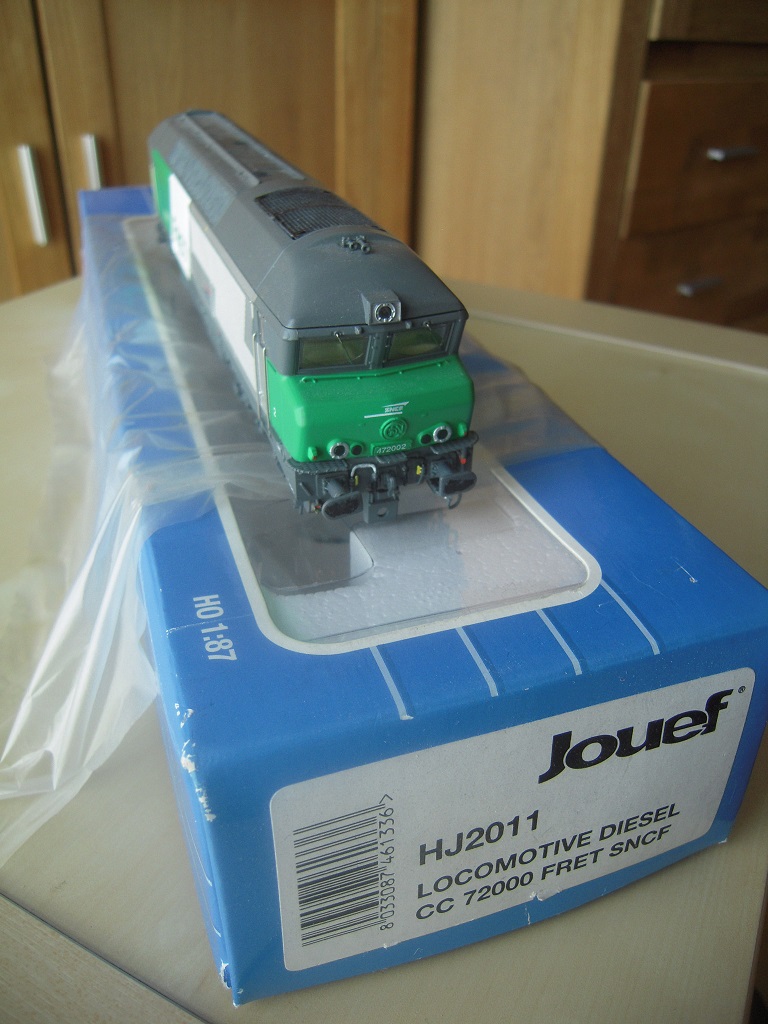 Vends CC 72002 HJ en livrée fret, ref: HJ2011. État neuf, peu roulé, traverses de tamponnement détaillées, attelage à boucle et support fournis, prêt à être remontés. Prix: 130€ port compris