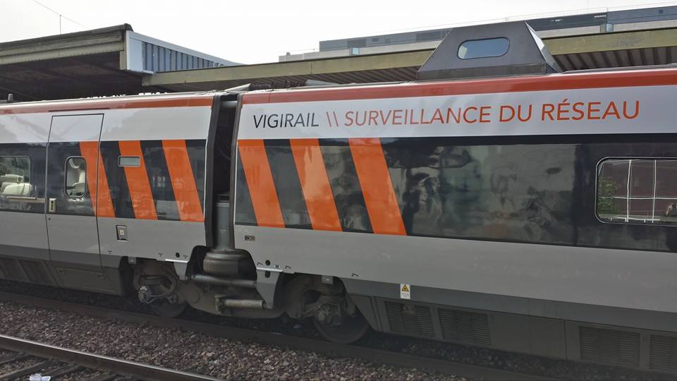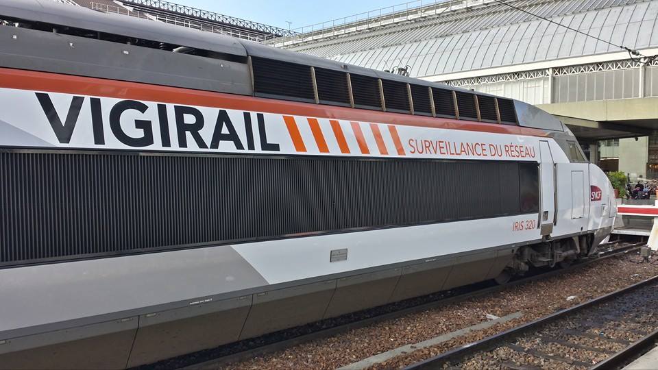 9. Bonjour, Des nouvelles d'Iris 320 : Voila la rame désormais en livrée Carmillon. Désormais la rame est Carmillon avec un logo SNCF plus grand sur la face avant. Au dessus de la grille de motrice il est inscrit VIGIRAIL - Surveillance du réseau. Les voitures sont aussi grises et noires mais la bande Carmillon se trouve tout en haut des voitures et non plus au dessus. Sur facebook circulent déjà des photos et vidéos. A noter que les contours des vitres des motrices ne sont pas noires comme sur les autres rames Carmillon mais grises. Etant donné que j'avais vu cette rame mercredi à Lille, je pense qu'il s'agit d'un simple pelliculage. David