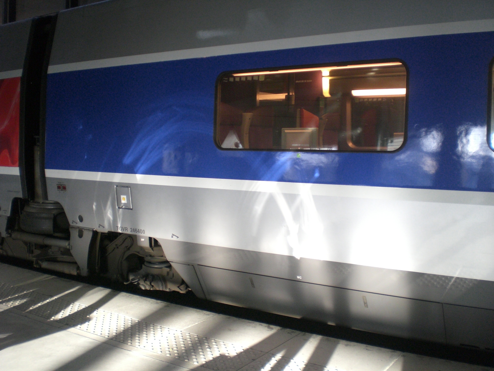 Hello ! Voici quelques photos du TGV Atlantique n°400 qui passait par Lille Europe samedi dernier. La peinture était toute belle, toute lisse, les autocollants pas usés, et même les trous pour les engins de levage étaient aux couleurs de la rame et non pas plein de graisse. MAGNIFIQUE !!!