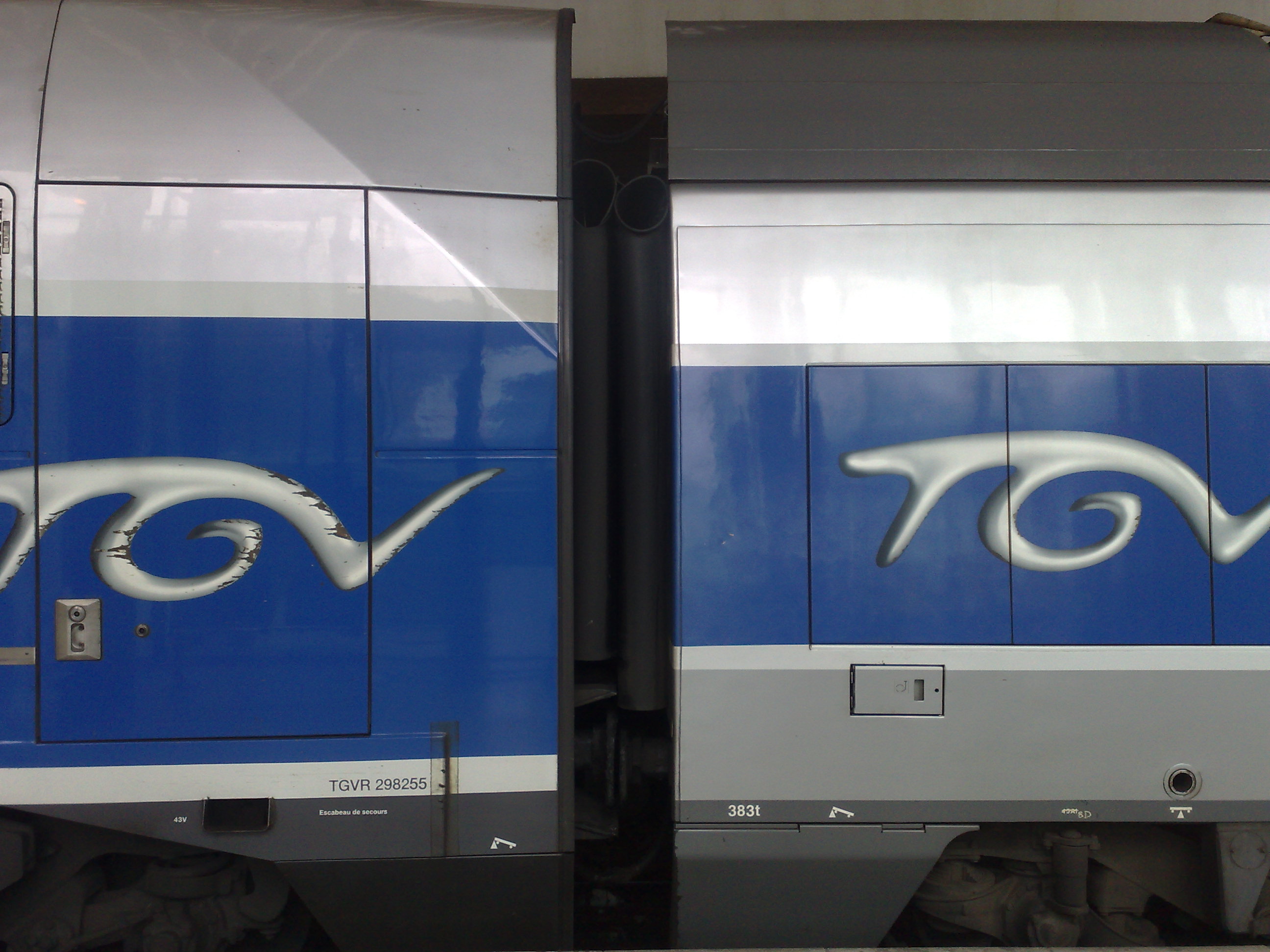 Hello ! J'ai remarqué qu'il y avait des TGV qui n'avaient pas des "decorations" sur le bas des casses entre la motrice et la 1ère voiture passager. Pourtant il semble qu'il y ait les points de fixation. J'avais déja remarqué cela sur des modèles reduits HO des différents TGV orange que je possède. Ces décorations de bas de caisse ne sont manquantes que sur certains anciens TGV orange d'ailleurs. Voila la photo pour illustrer ma remarque : David