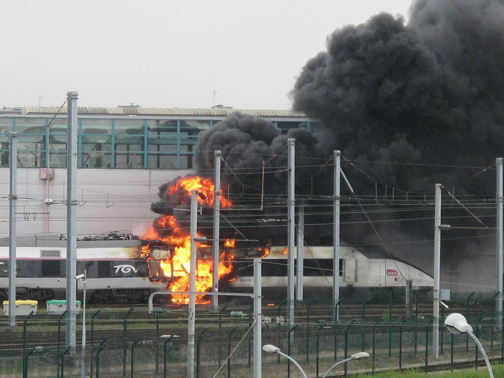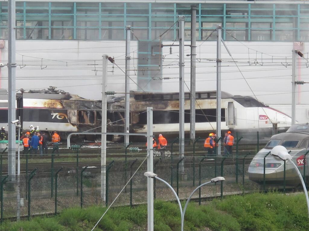 La motrice est pliée par la chaleur et la caisse touche les rails. Je pense qu'elle finira découpée sur place... David (source des photos : facebook)