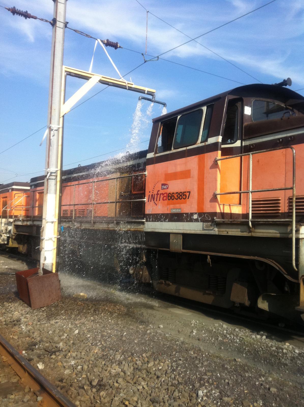 et non pour angoulème ni pour achères Les douches servent a mouillé le ballast pour les RVB car quand il fait chaud lors du déchargement de ballast cela produit beaucoup de poussière!!