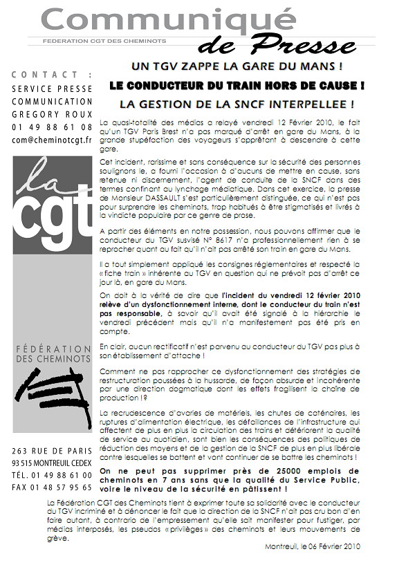 Le TGV ne s'arrête pas au Mans le 12/02-La Vérité