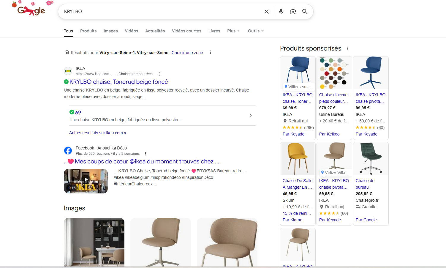 D'où l'importance d'être précis dans les termes dans un moteur de recherche. Recherche avec Krylbo et on tombe sur les produit Ikéa. Recherche avec ville de Krylbo.