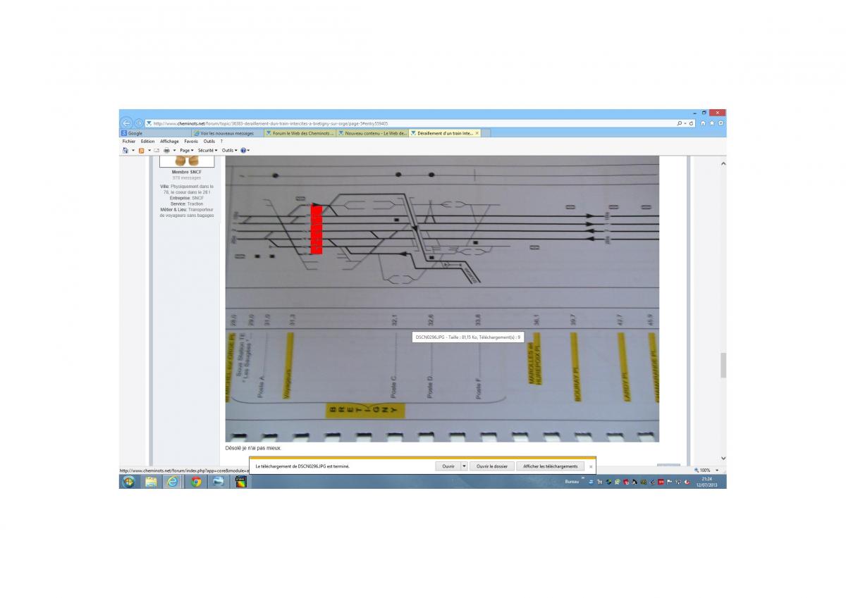 Il faudrait savoir sur quellle voie circulait ce train ? La dernière voiture ou plutôt le dernier bogie est sur la voie 1 bis, et la voie immédiatement à droite de cette voie est la voie 1 ou aurait du circuler ce train, mais est ce que le plan de circulation a été respecté ?