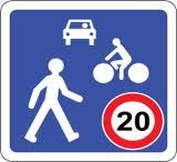 Attention, seulement dans les "zone de rencontre" signalées par ce panneau. et dans les rues avec ce panneau