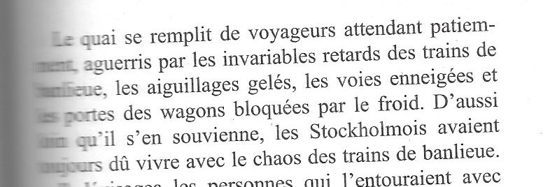 Ce n'est certes qu'un roman mais cela m'a fait sourire en lisant ce passage, j'ai pensé que tout le monde prétend qu'au moibdre flocons en France c'est le bordel alors que dans les pays scandinaves, avec un mmétre de neige ou par -10, tout roule parfaitement, à méditer.