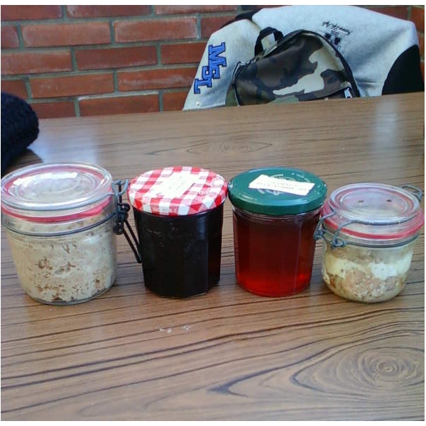 Je rappelle, au point de vue intendance que j'amène 1 pots de rillettes, 1 pot de pâté et un pot de confiture (il faut que je pense à prendre une cuillère, sinon on est mal), préférez vous coings ou cerises pour cette dernière ? Ma bonté me perdra, je suis trop généreux.
