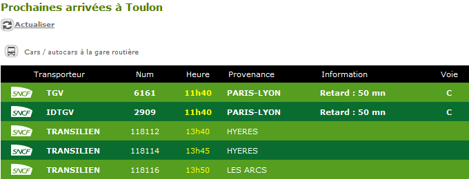 En raison de la grève, le plan de transport a été modifié, parfois probablement à la dernière minute. D'où la nécessité d'utiliser des sillons de dernière minute, dans des tranches de numéro inhabituelles. D'où des situations cocasses, si on prend les choses au pied de la lettre : Ainsi, on peut voir que des trains Transilien desservent la gare de Toulon. Il faudrait se rendre à Toulon pour voir si les annonces de Simone parlent de TER ou Transilien...