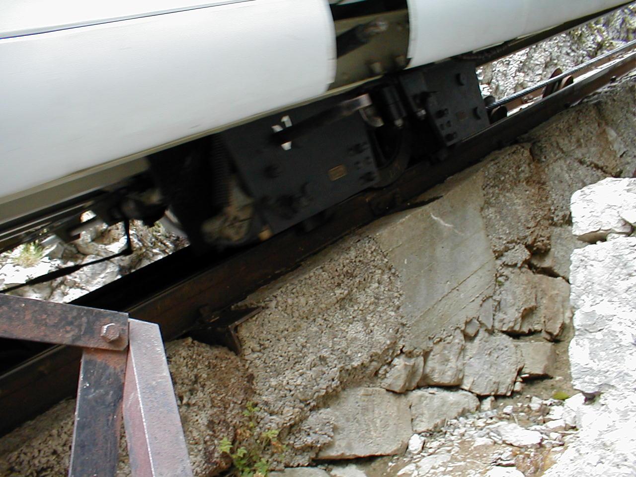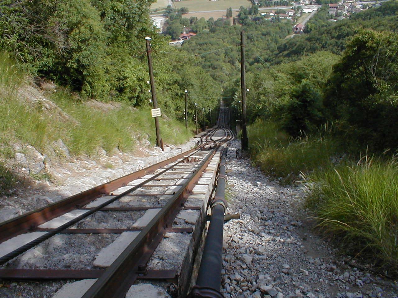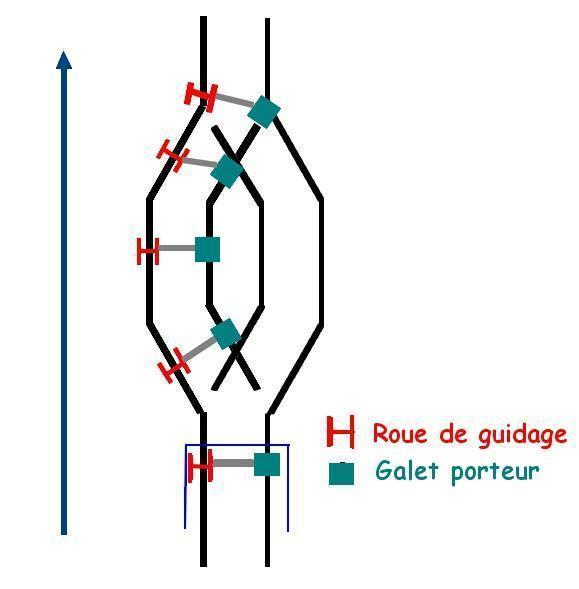 Je suis allé à celui du Touvet dans le pays de Ioda ....c'est le même....! Lors de la descente à pied nous sommes allés voir comment cela marche! Les choses les plus simples sont bien les meilleurs.....http://www.cheminots.net/forum/uploads/post-17-1143876052.jpghttp://www.cheminots.net/forum/uploads/post-17-1143876114.jpg D'un coté il y a une roue à gorge et de l'autre ce n'est q'un galet qui repose sur le rail. Donc une seule roue assure le guidage et c'est celle de l'extérieur de l'évitemment.....de cette manière, le funiculaire prendra toujours le rail extérieur.... Un petit schéma est toujours mieux qu'un long discours.....- 'j'aime Le Train' En 2006 ?