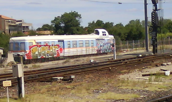 Narbonne ? (et à quai se pourrait être les voitures inox stationnées habituellement à St Jory)
