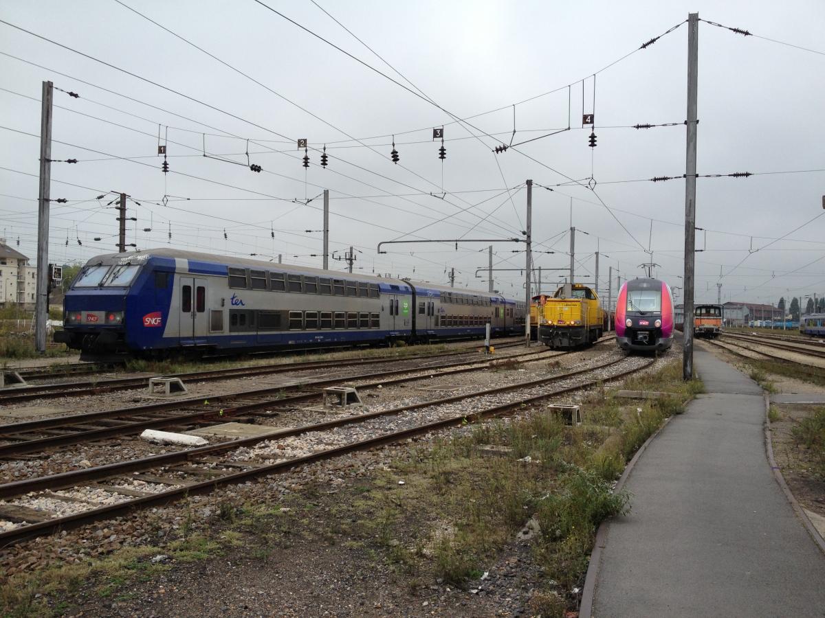 Salut les collègues, Une petite série de tofs faite cette aprém à Creil, en allant à ma vmt. Il s'agit de la réception de la Z50152. Vous remarquerez la pluridisciplinalité du faisceau plaine de Creil! Materiel flambant neuf! Bogie Capteurs Capteurs 2 La belle de face, sans son numero ( 76H)