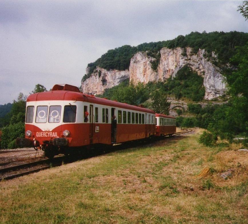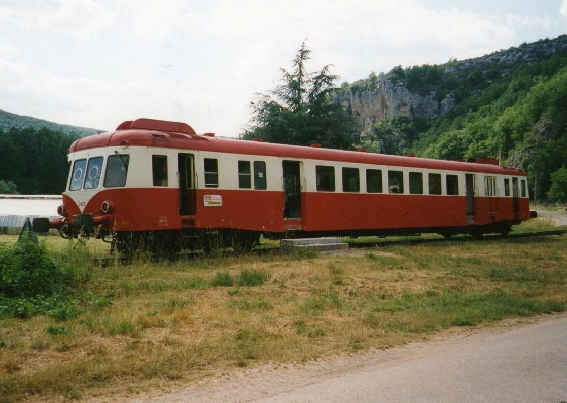 Slt Si je puis me premettre de rajouter quelques photos ( bon c'est du scan, donc moyenne ) du X 2425 du temps où il etais dans la Vallée du Lot. C'est un vrai bonheur à conduire ( je précise en touristique car tous les jours en ligne ca devait etre "bruyant" ), un autorail qui réagit au doigt et à l'oeil, une souplesse et une puissance, avec le bruit du V dans les oreilles en prime. Lalis, Tour de Faure, Lot, 1995 Cajarc, Lot, 1995 Lalis, Tour de Faure, Lot, 1995 Vers, Lot, 1996