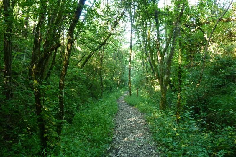 Voici un reportage photo de l'ancienne ligne à crémaillère et à voie métrique du Revard. Il ne reste rien de la gare de départ, tout à été chamboulé. Il n'est pas toujours évident de retrouver la trace de cette ligne dans la ville d'Aix-les-Bains, avant la gare de Mouxy qui à été reconstruite il y a quelques années. Les tranchées ont été rebouchées à certains endroits et la plateforme transformée en rue à d'autres endroits. Plus haut c'est un sentier que l'on peut emprunter sans problèmes avec des panneaux explicatifs. A l'emplacement de la gare de départ, la voie passait sous le pont du boulevard de la Roche du Roi: Elle passait dans le bois Vidal: Elle passait sous le chemin de Saint-Pol et le suivait en tranchée. Entre ce passage sous le pont et la gare de Mouxy, la plateforme est devenue rue ou chemin carrossable coupé par l'autoroute: