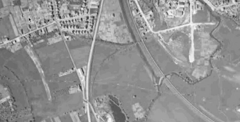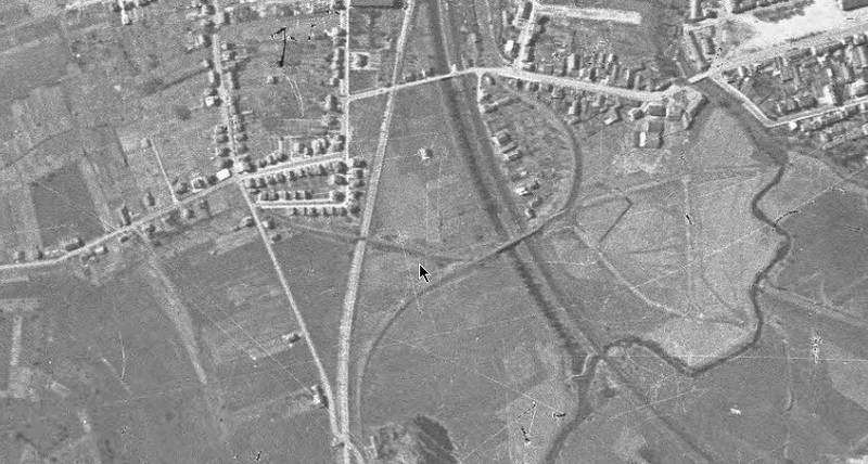 Je crois que c'est bien cette ligne. En vue aérienne de 1940: En vue érienne de 1951: le pont était déjà comme on le connait aujourd'hui: Et le pilier du saut de mouton au niveau de la ligne vers Montbonzon: