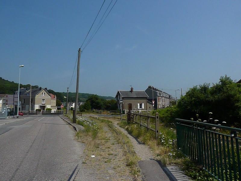 Début de la ligne de Fécamp à Dieppe (76) Gare de fécamp: Entre la gare et l'EP de la rue du Précieux sang; EP de la rue du Précieux Sang: Avant le heurtoir et le PN: PN de la rue Sait Nicolas: Au niveau du supermarché: PN de la rue Queue de Renard: