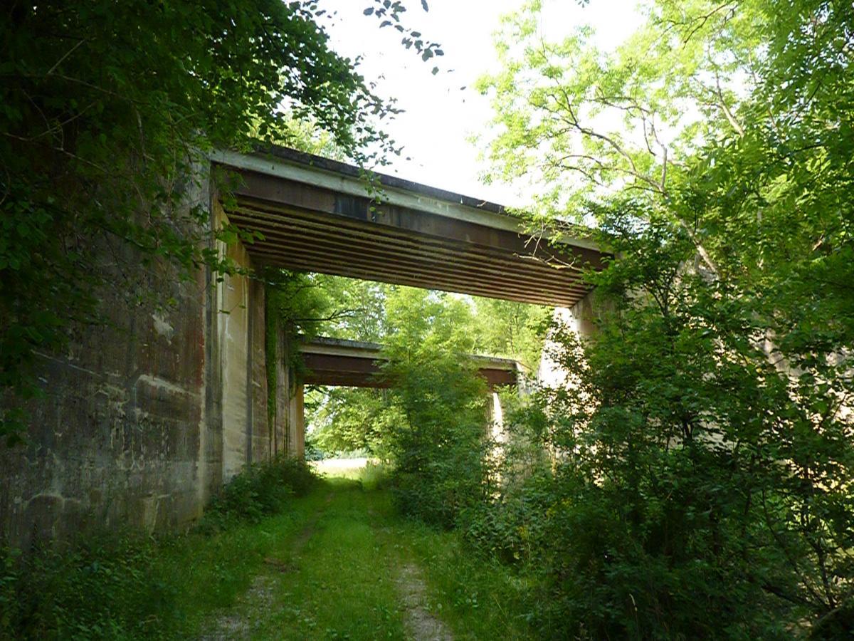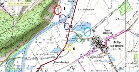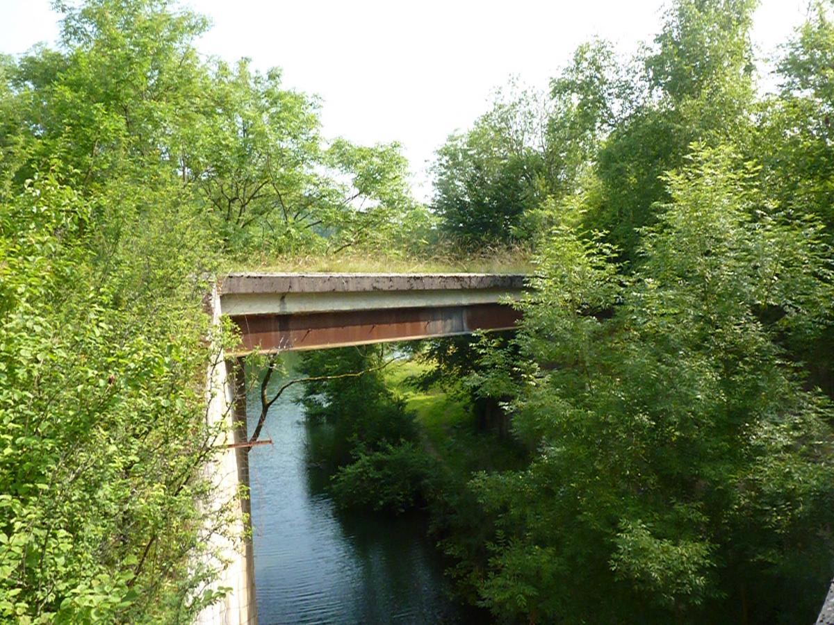 Voici les photos de vestiges d'une bifurcation se trouvant vers Dun-sur-Meuse. Pour commencer deux extraits de cartes IGN permetant de les situer: *Le 6 en jaune clair n'existe plus: c'est le camping à la place. Le 6 en vert correspond aux photos présentées. Galerie de Sasseuil: Pont sur la Meuse détruit: Pont entre la Meuse et la D964: Pont routier de la D102 sur la voie ferrée. Galerie du Breuil (saut de mouton): Pont-rail sur un chemin: Pont: Pont détruit sur la Meuse: Ponts-rail sur la Vieille Meuse: Ce qu'il reste de la plateforme avant l'un des deux ponts: