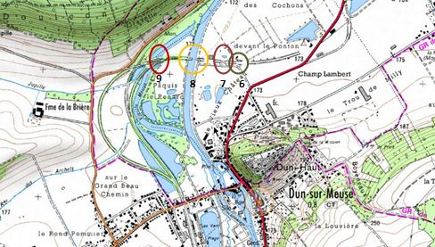 C'est bien à Dun-sur-Meuse. Ponts au-dessus de la vieille Meuse. Je vais peut-être faire une petit sujet photos avec les vestiges de ce coin.