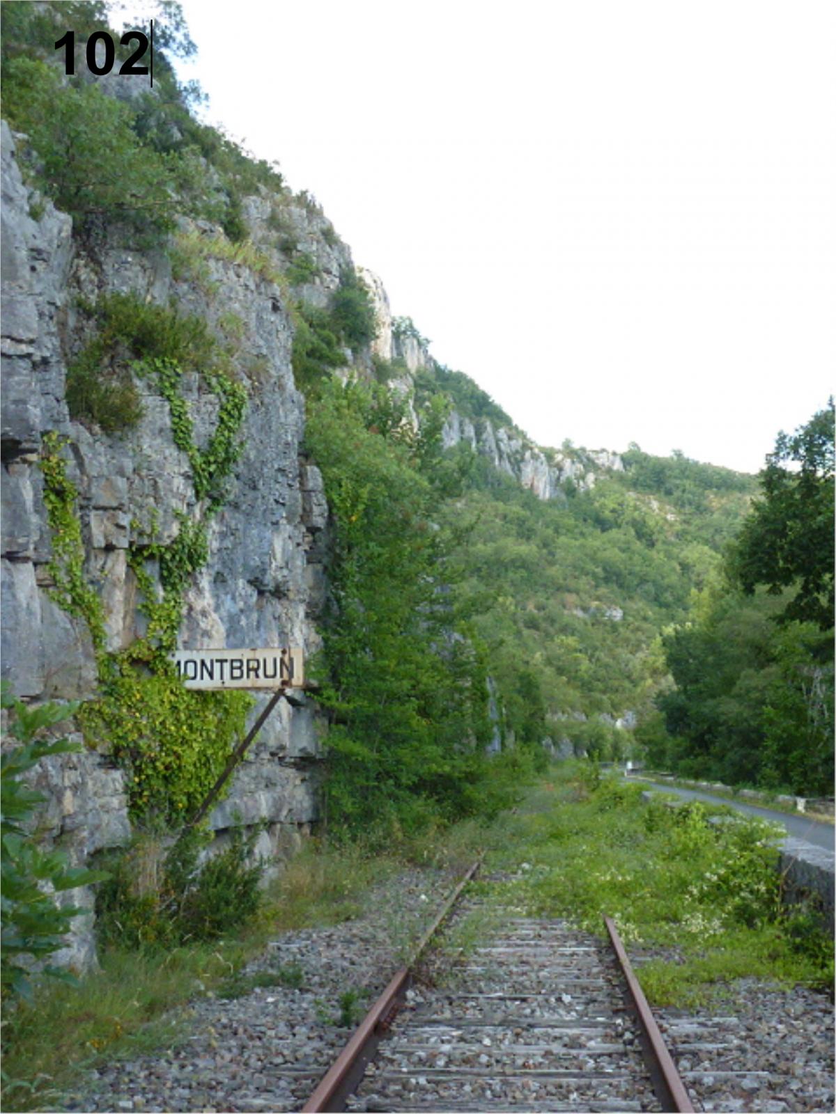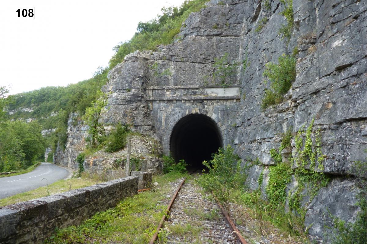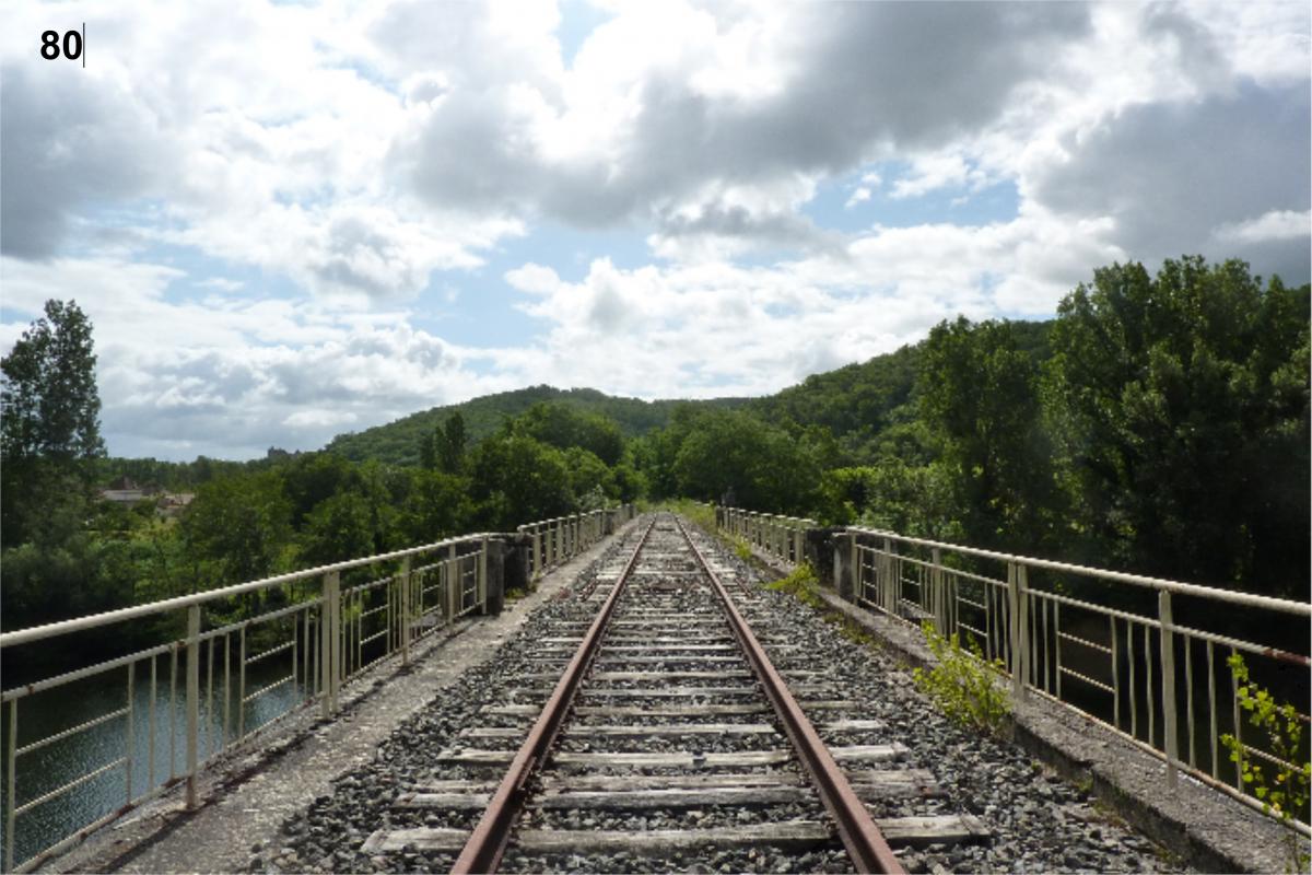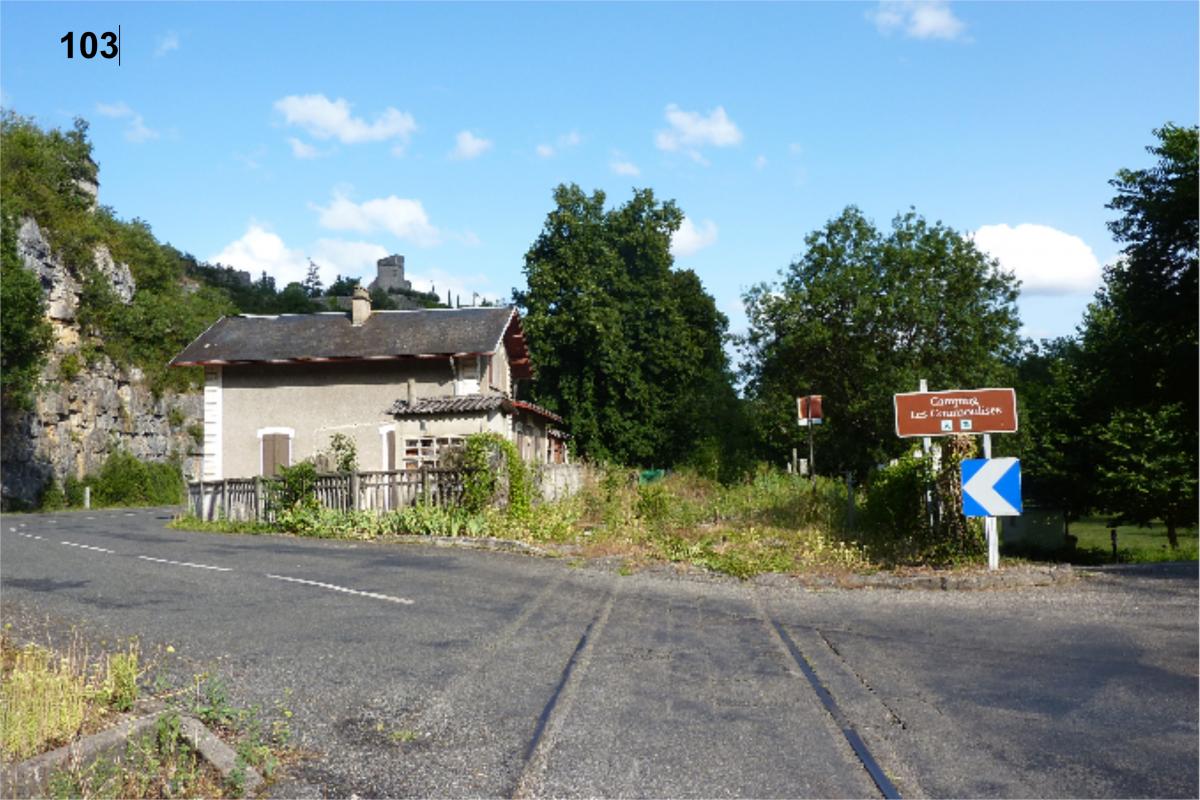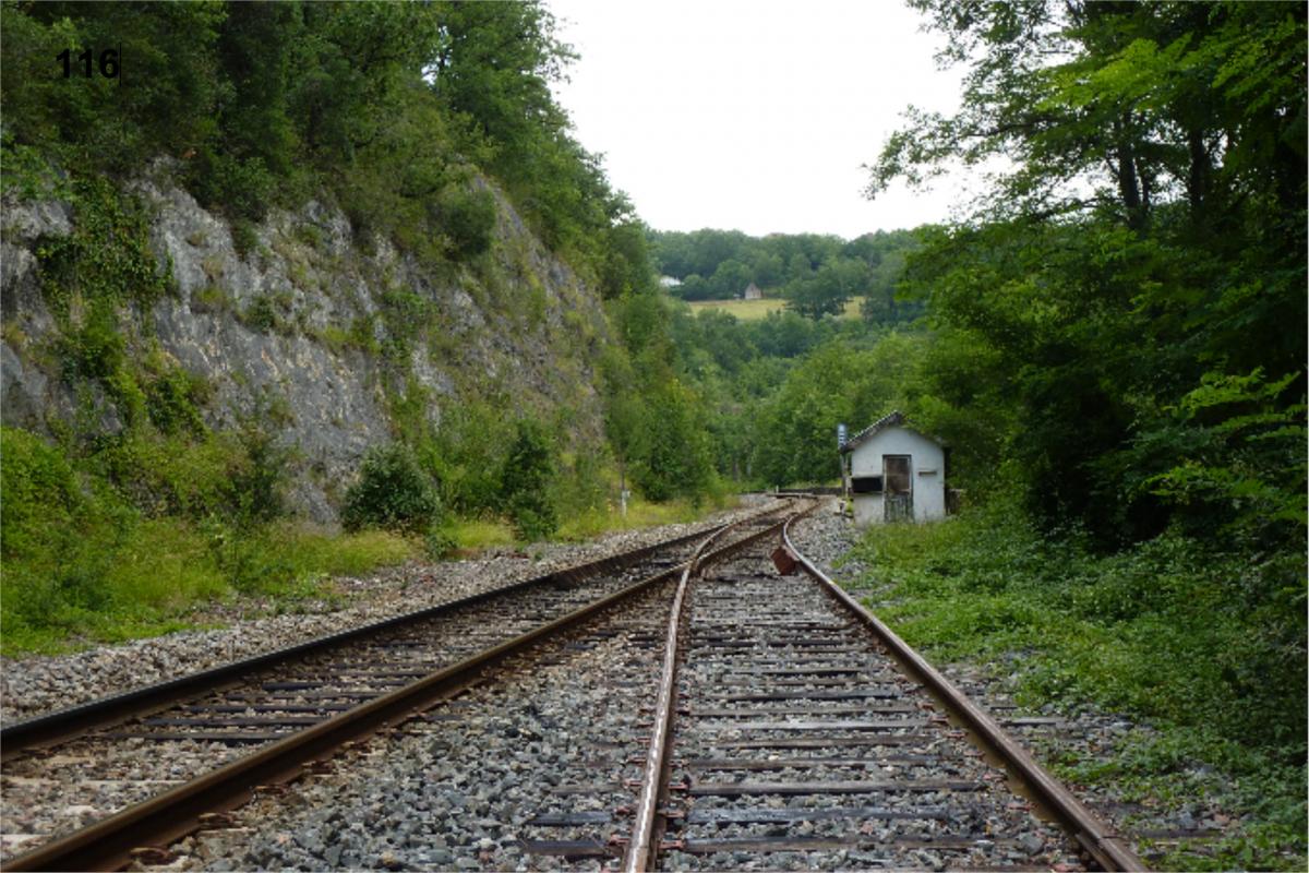 Gare de Conduché: Entrée, galerie et sortie du tunnel de Coucoulous: Entrée et sortie du tunnel de Cadoulès: Gare de Saint-Cirq Lapopie: Gare de Saint-Martin de Labouval: Tranchée et signalisation bizarrement présentée avant pont de Saint-Martin: Pont de Saint-Martin: Tunnel de Cénevières: