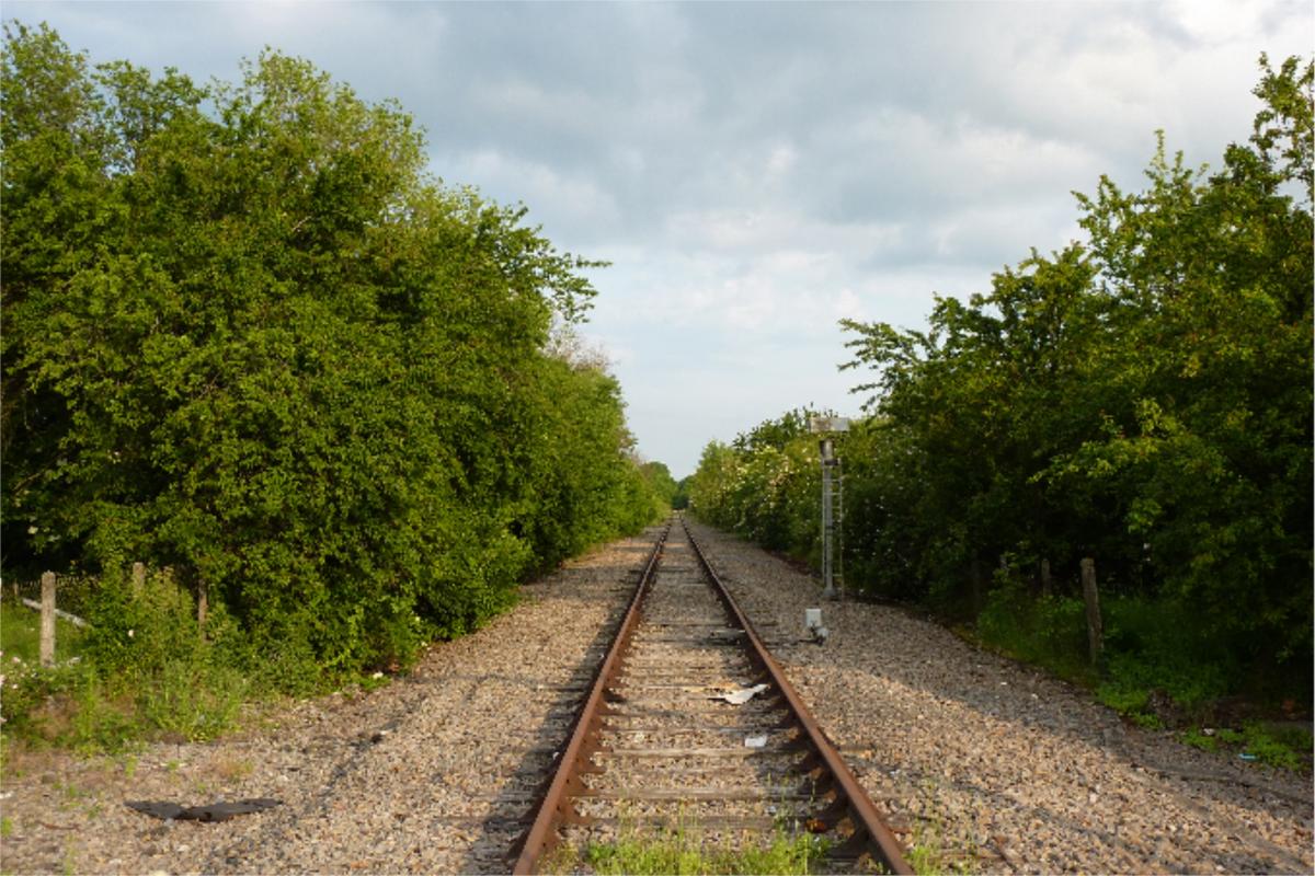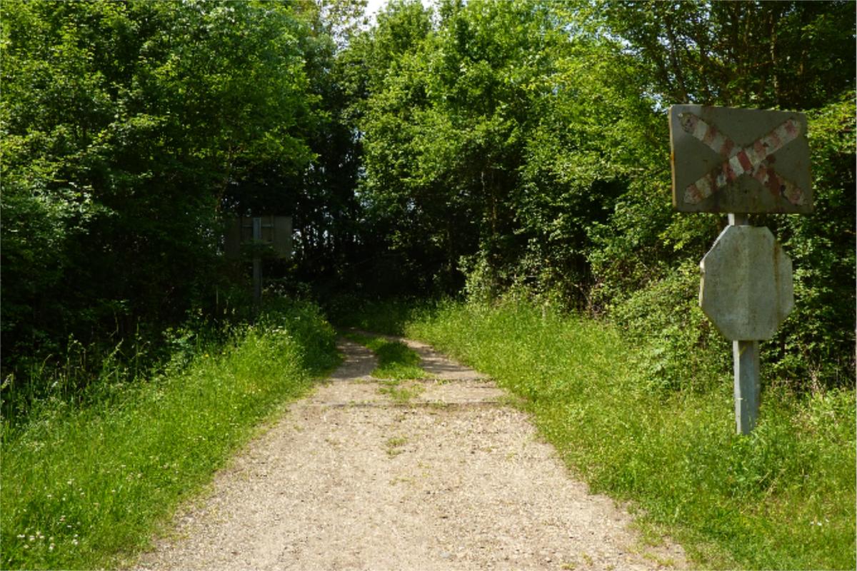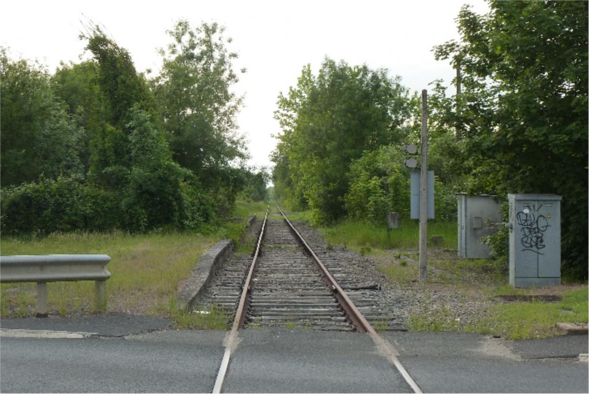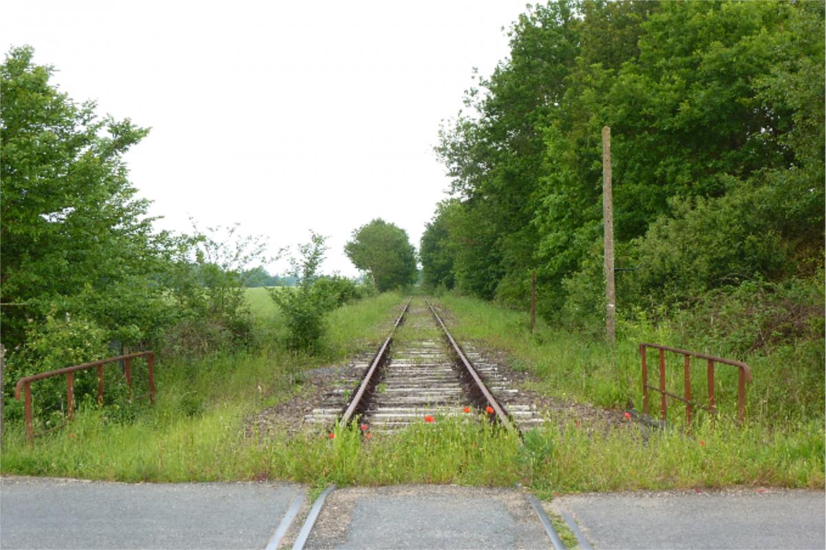 11. Ligne non exploitée mais visiblement entretenue entre Chateauroux et Ardentes. Au niveau du PN de la D920 en regardant vers La Chatre PN de la D943 avec ancien arrêt de la Forge de l'Ile