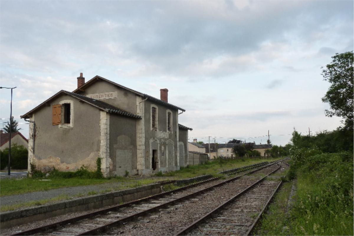 10. PN de la route forestière de Clavière en regardant vers La Chatre PN lieu dit "le lac de Blanchet" en regardant vers Chateauroux Gare d'Ardentes dans un bien triste état. J'ai prudemment évité la ballade à l'étage. L'état du plancher ne donne pas trop envie. La gare marchandises: