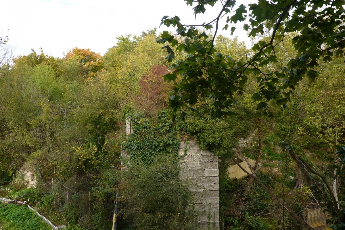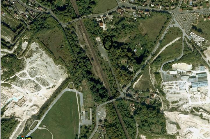 C'est bien dans les carrières de Saint Maximin, dans la partie à ciel ouvert abandonnée. J'ai trouvé les vestiges de ce pont en cherchant des restes de tunnels ferroviaires présents dans ces carrières. Pour touver le premier, il m'a suffit de suivre l'ancienne plateforme que l'on peut voir à partir de ce pont. Cela m'a facilité les choses. Voici une autre photo de ce pont: C'est le pilier de droite sur la première photo prise depuis l'autre pilier. Et voici une vue aérienne de l'endroit: