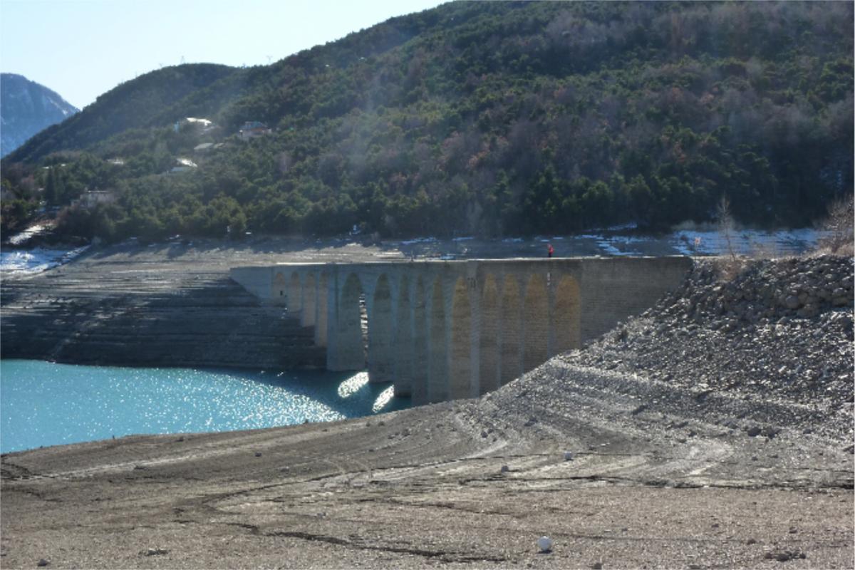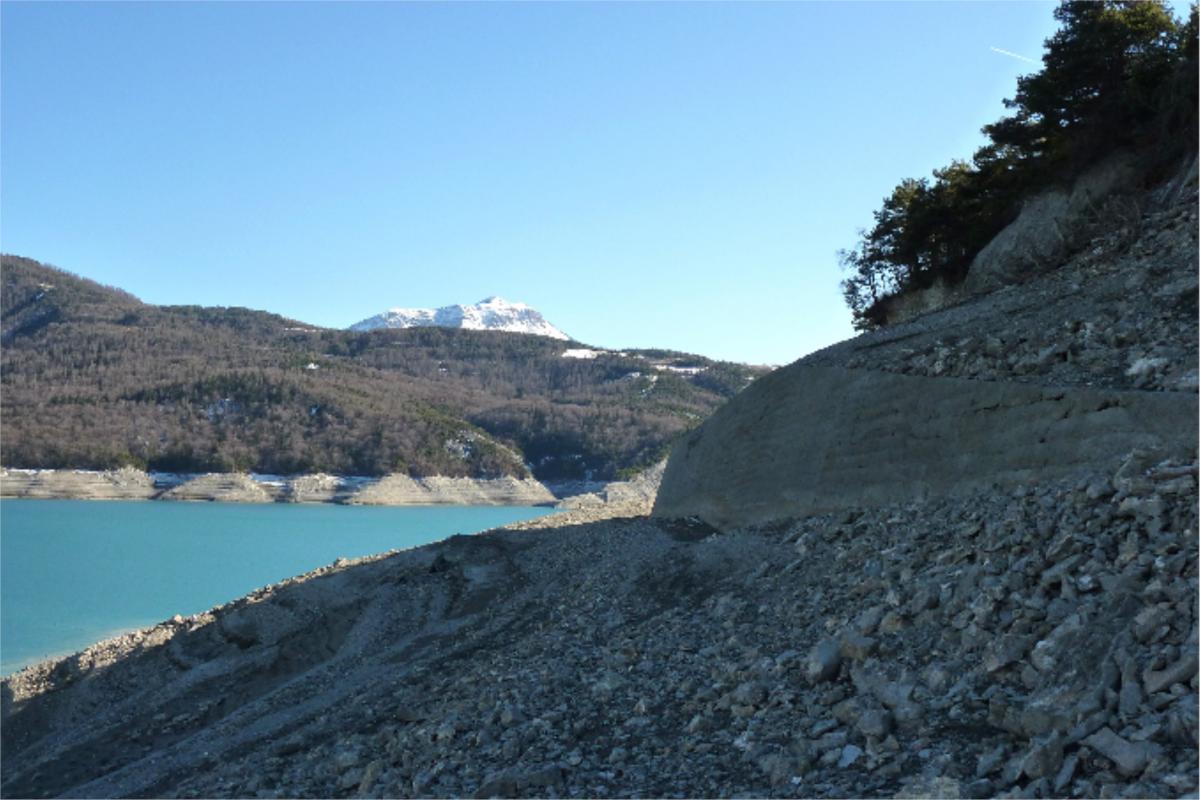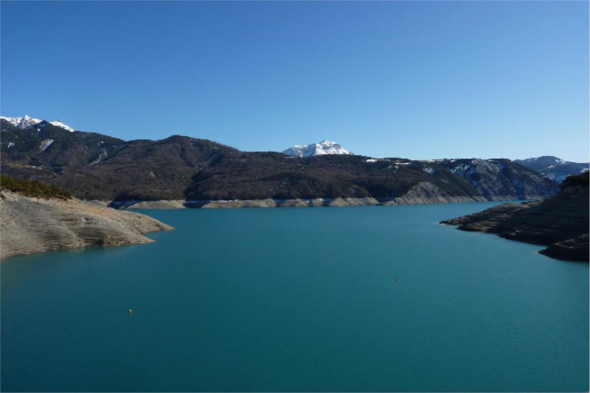 Je crois que c'est le niveau habituel du lac en hiver avec la centrale électrique qui tourne à plein régime à cette époque. Il était déjà comme ça l'année dernière. Mais l'été il est plein.