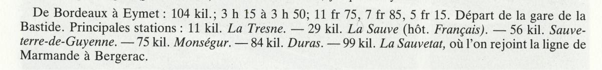Extrait d'un guide d'une époque révolue ! Vous pensez : 3 heures 50 pour faire 104 km ! Et à 11 francs 75 en 1ère classe.
